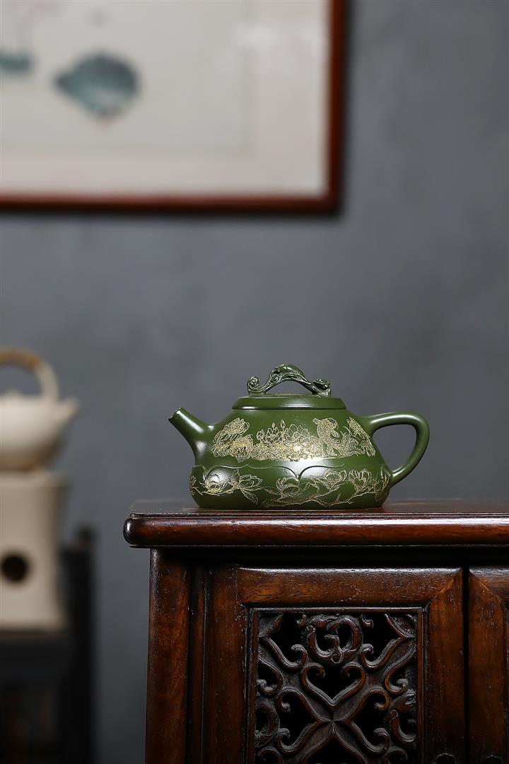 原礦翡翠綠泥金玉滿堂茶壺POT7019