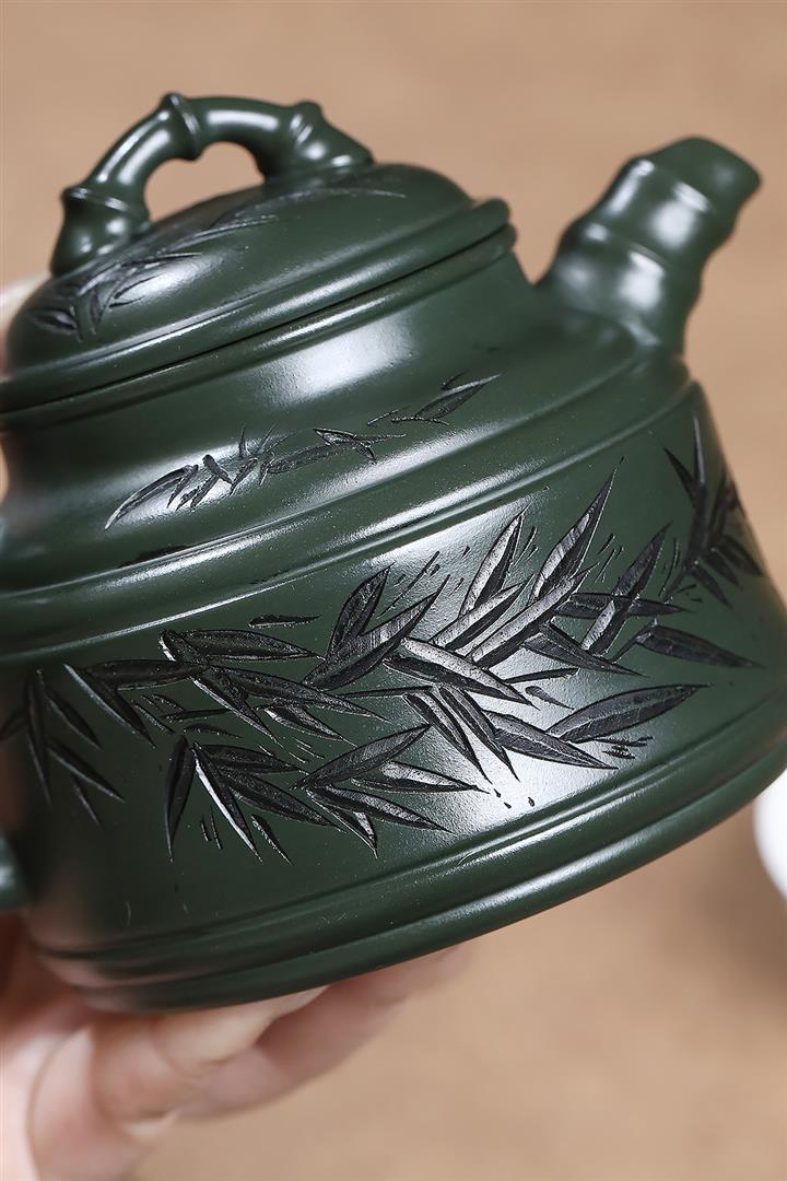 原礦墨綠泥任平生竹鼎茶壺POT7020