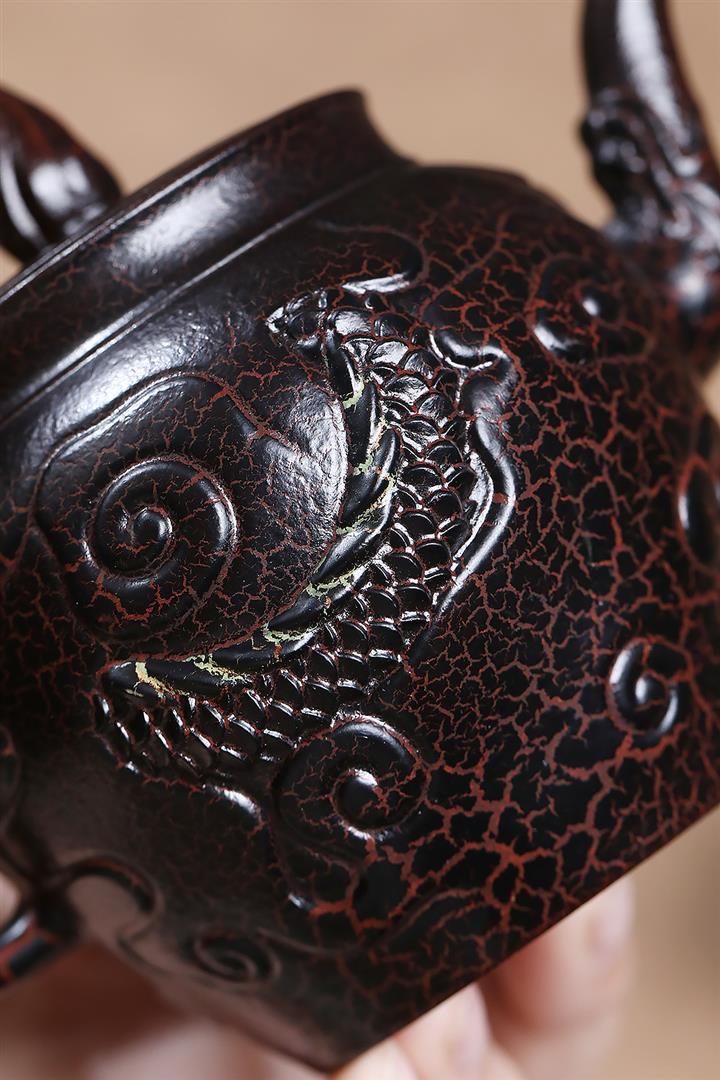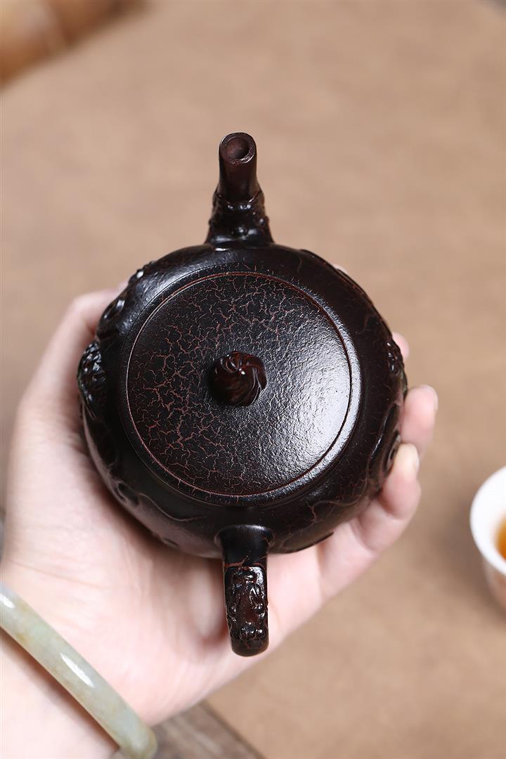原礦鐵血紅砂古法貝殼燒龍騰宮燈茶壺POT7021