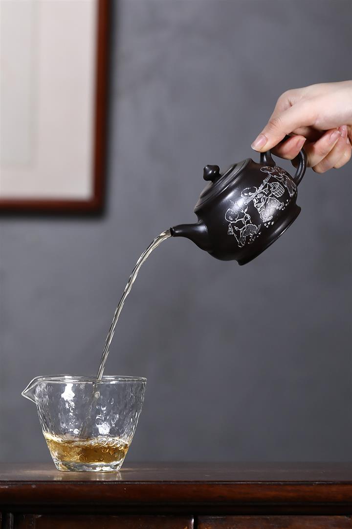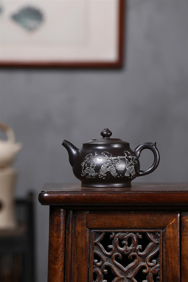 原礦紫泥八方納百福茶壺POT7046