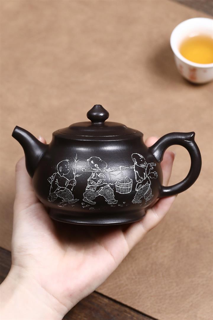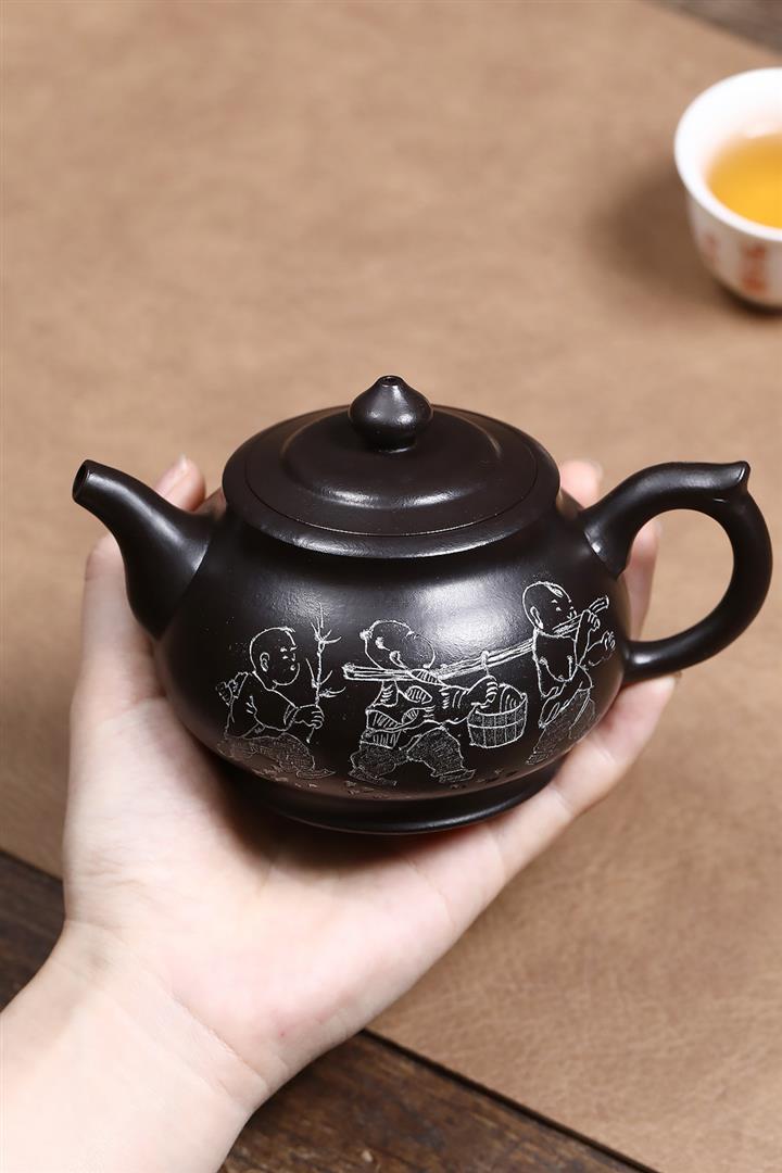 原礦黑金砂描金仿古茶壺POT7040