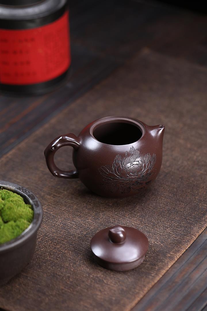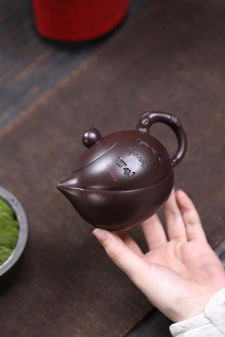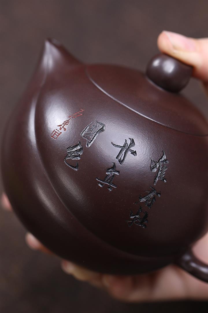 原礦赤龍血砂牡丹壽桃茶壺POT7052