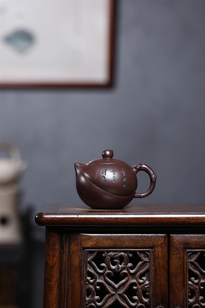原礦紫泥刻繪山水德鐘茶壺POT7056