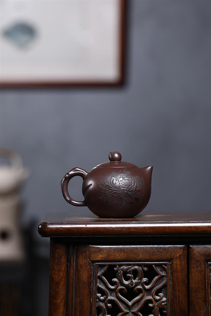 原礦紫泥刻繪傲梅容天茶壺POT7055