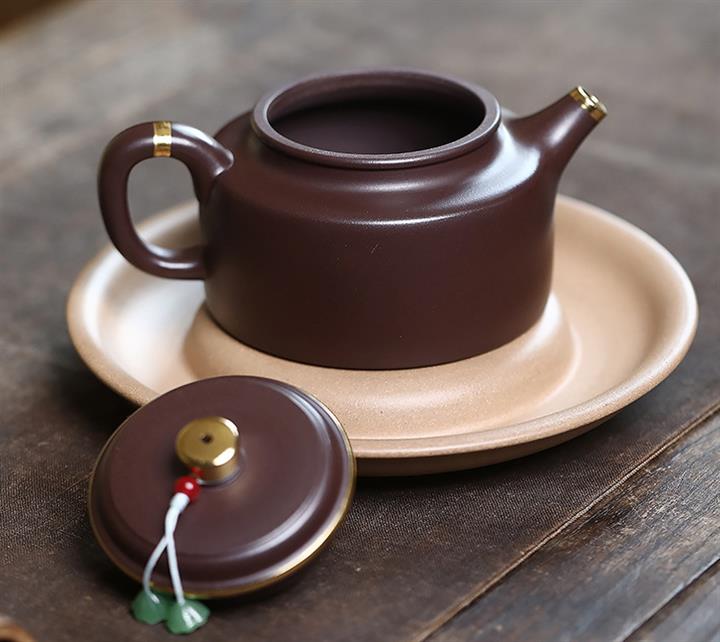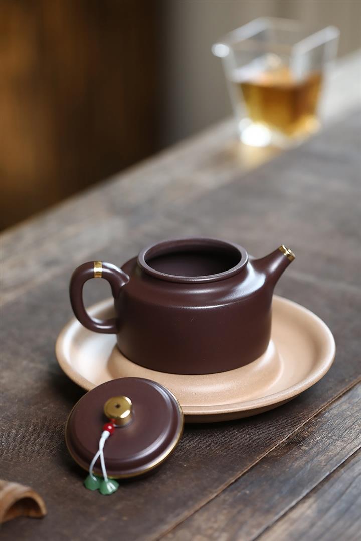 原礦黃金段泥純全手工高虛扁茶壺POT7087