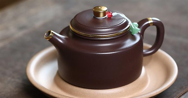 原礦百目紫泥手工描金德鐘茶壺POT7068
