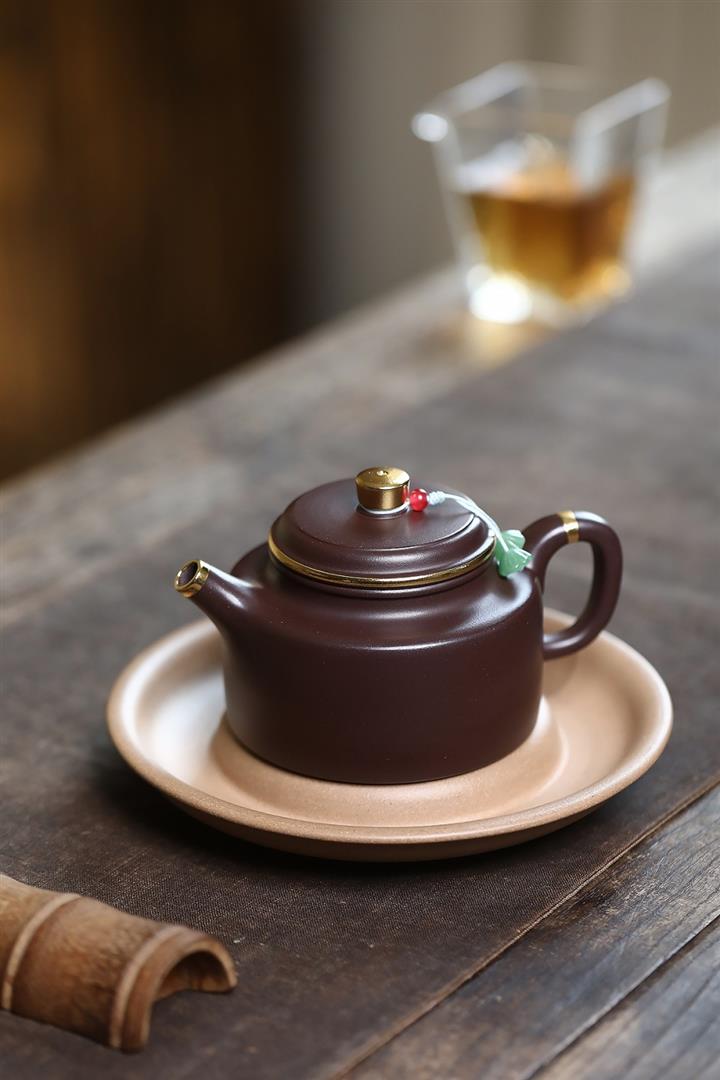 原礦百目紫泥手工描金龍蛋茶壺POT7070