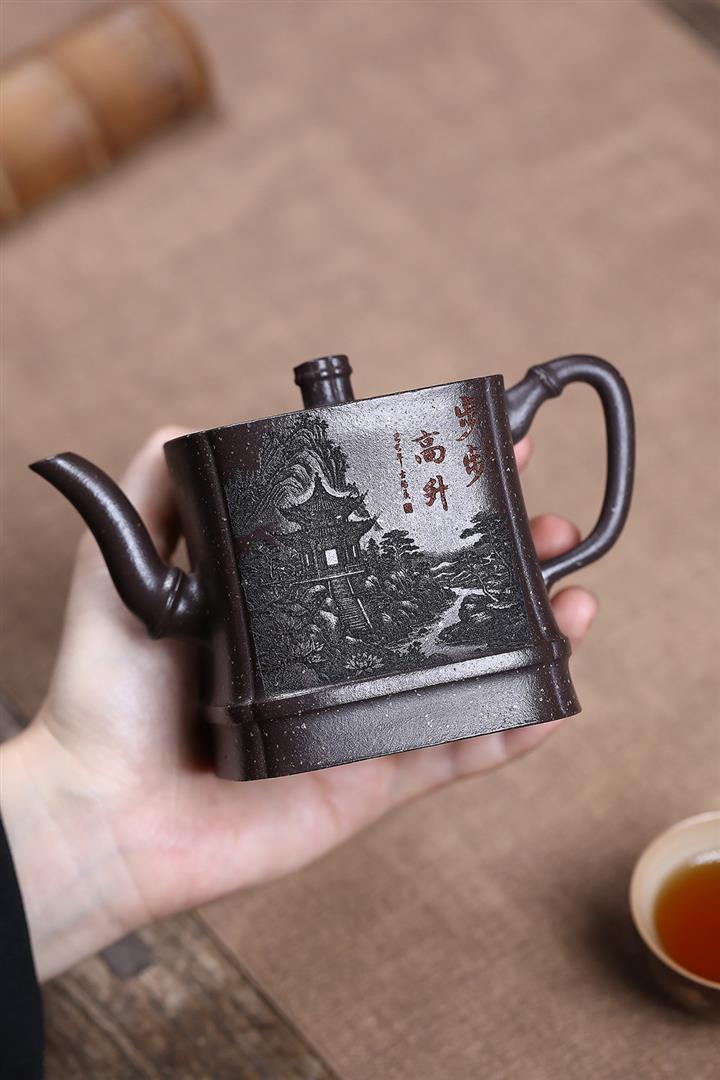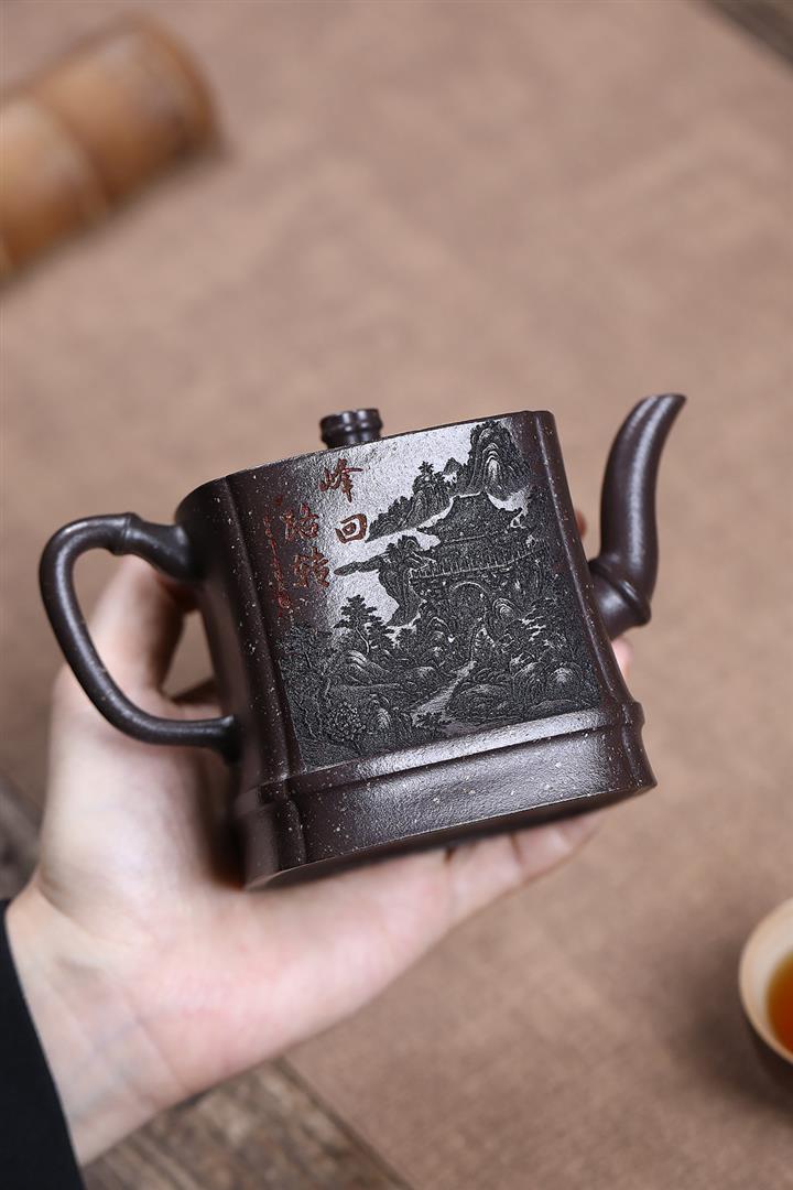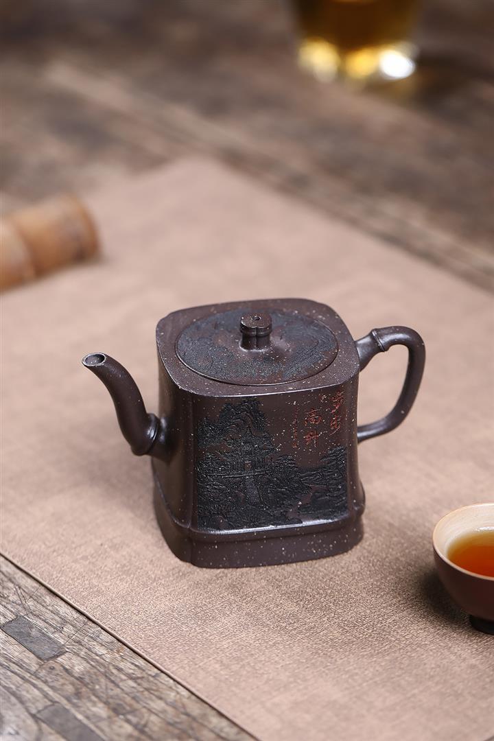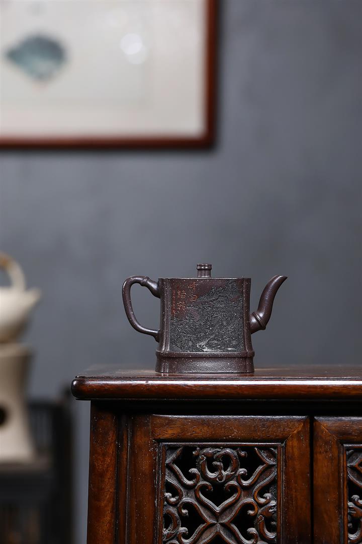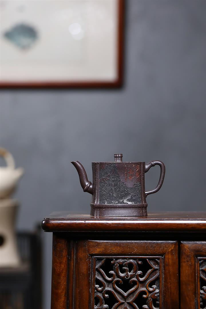 原礦大紅袍堆繪點金秦權茶壺POT7232