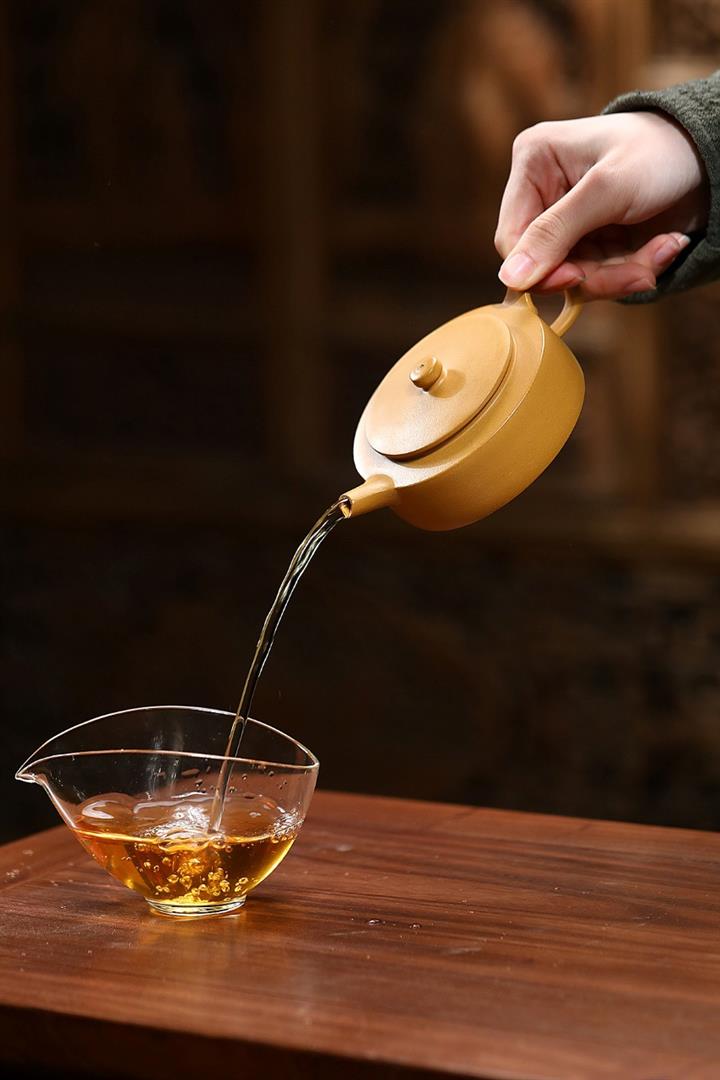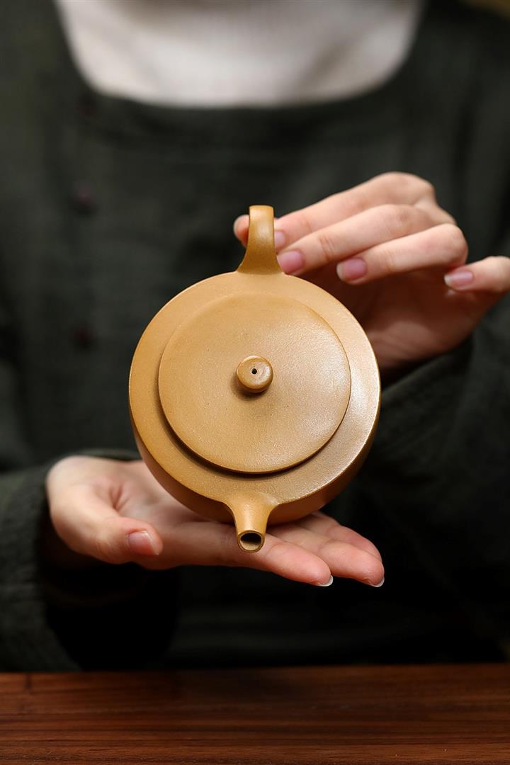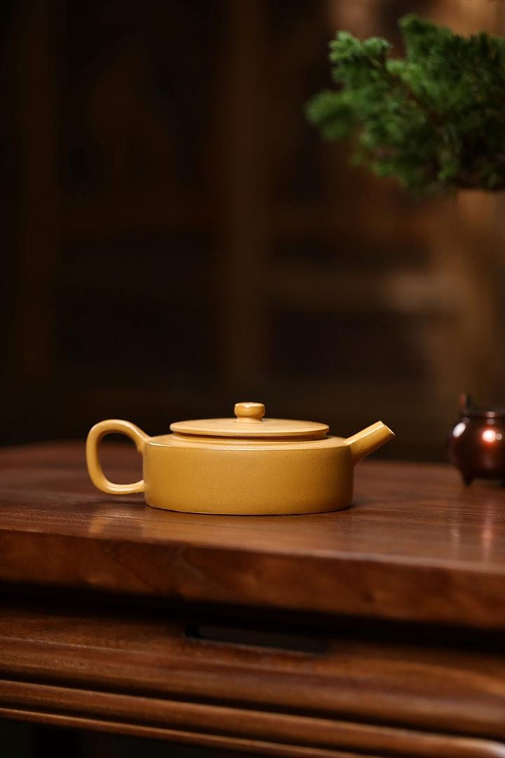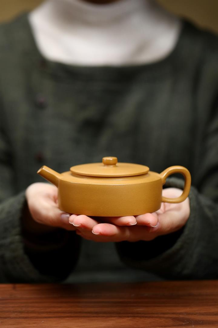 原礦黃金段泥純全手工高虛扁茶壺POT7087