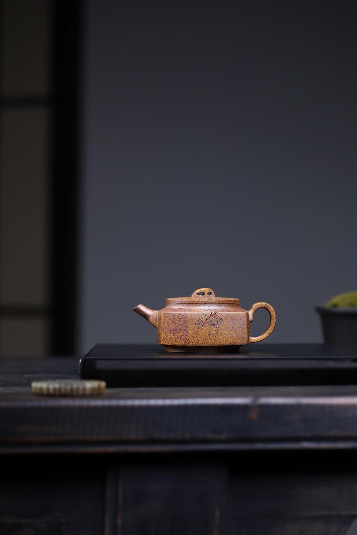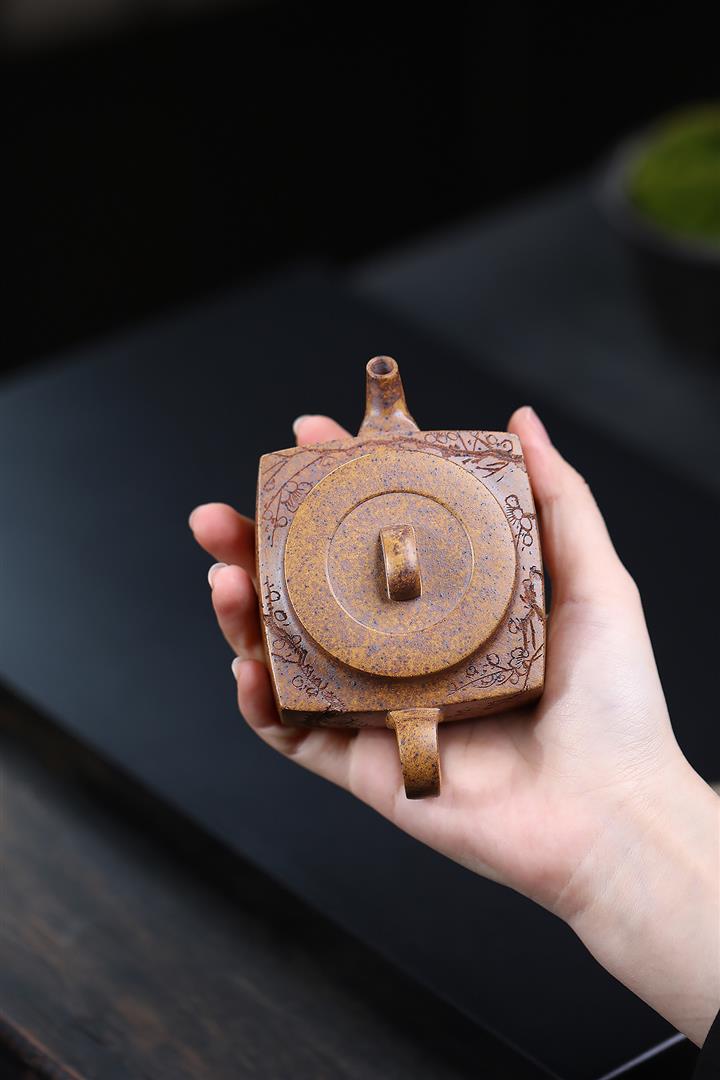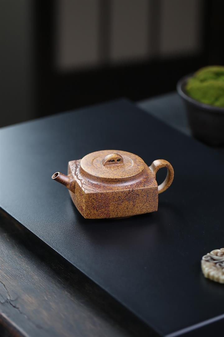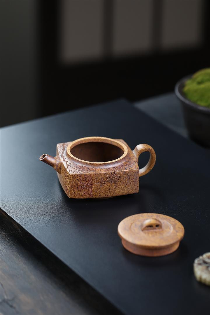 高溫柴燒龍骨金砂四方尋梅茶壺POT7092