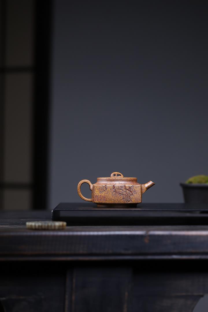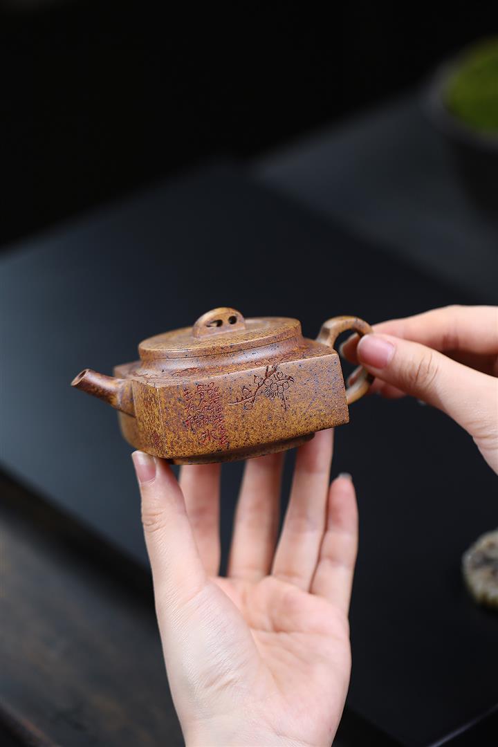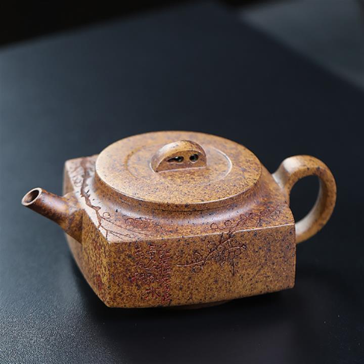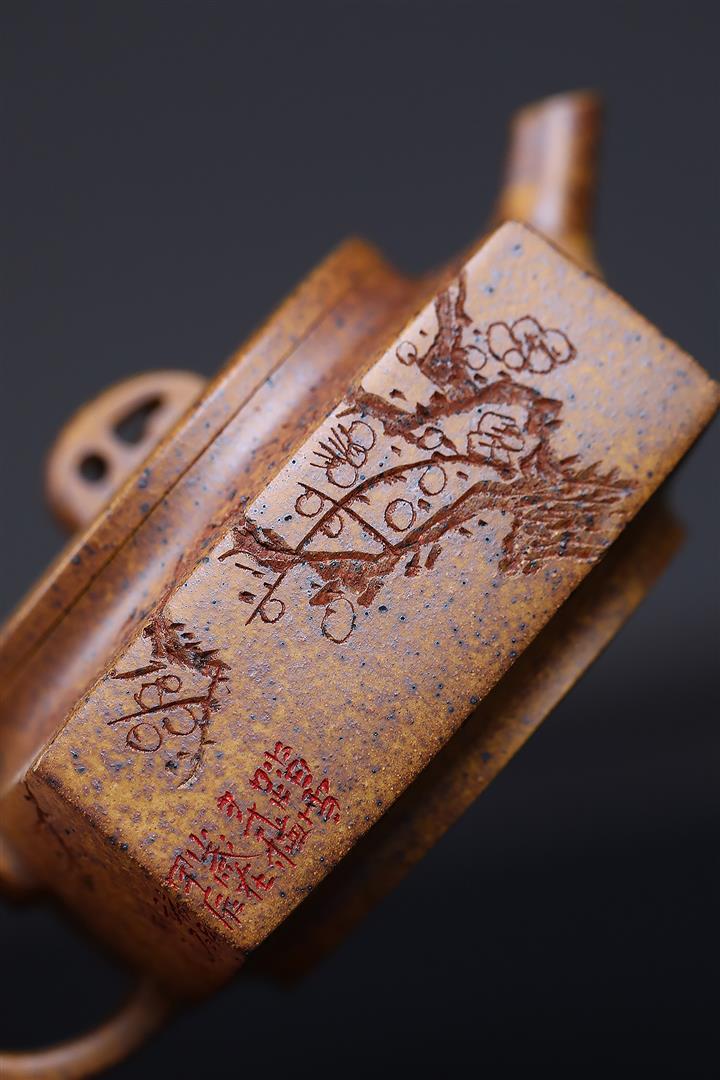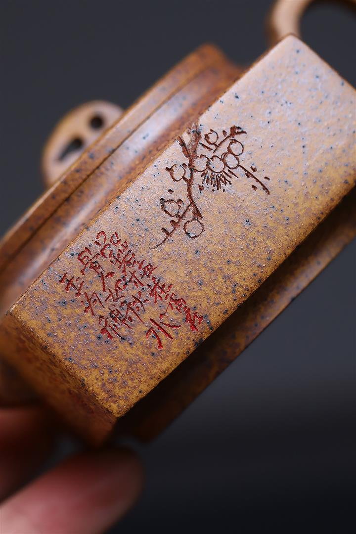 高溫柴燒龍骨金砂四方尋梅茶壺POT7092