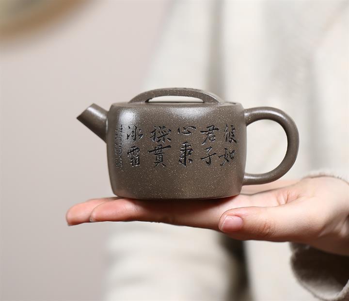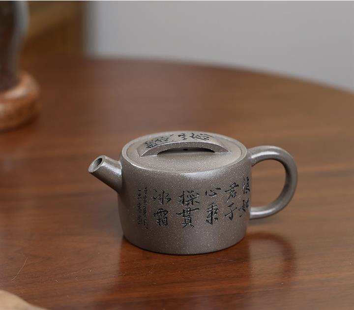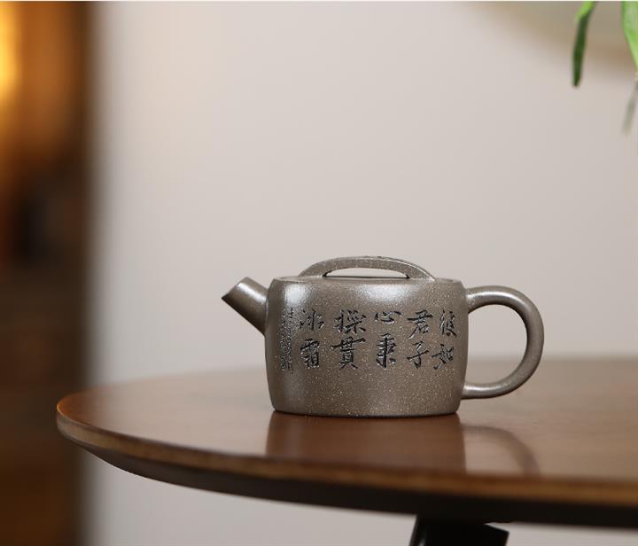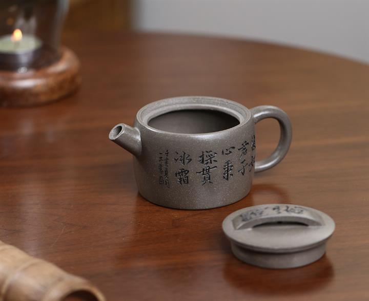 原礦青灰段泥手刻炮嘴漢瓦茶壺POT7094