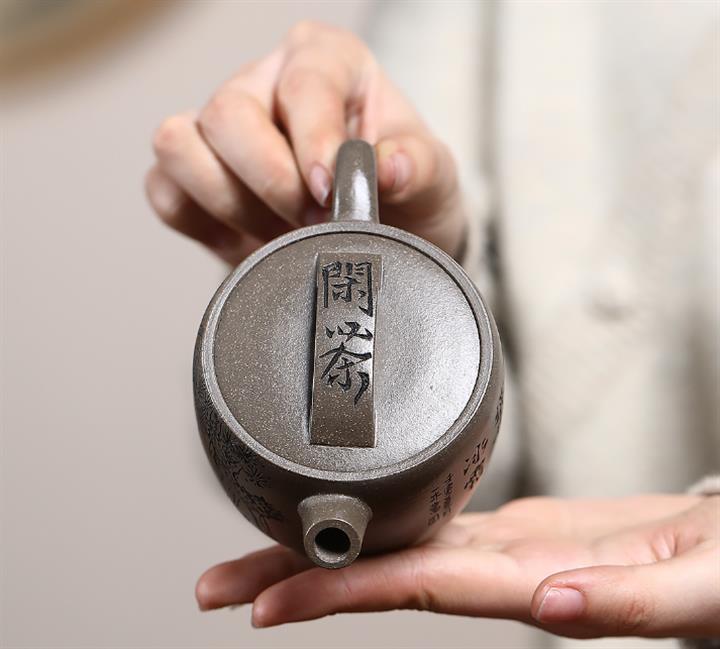原礦降坡泥手刻觀山桑盤茶壺POT7138