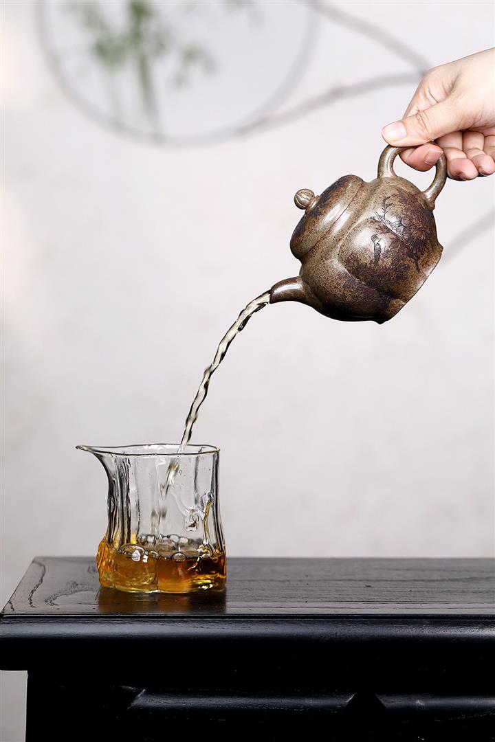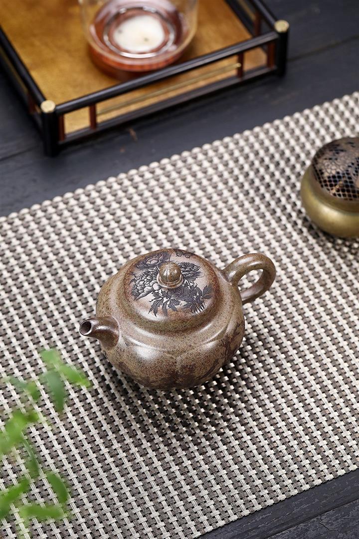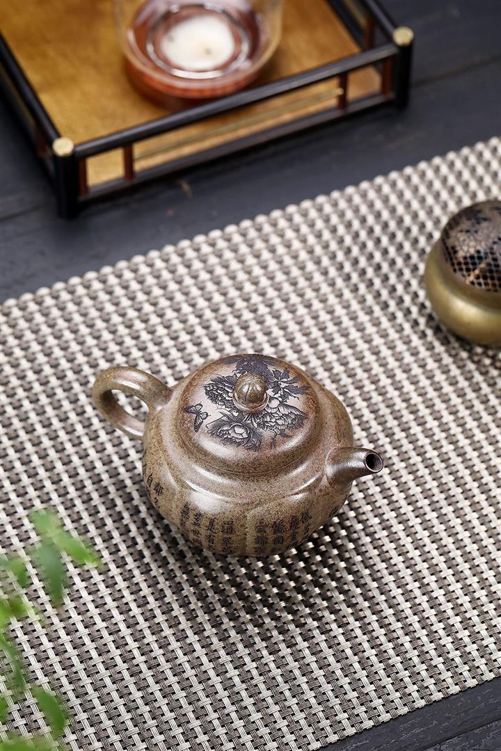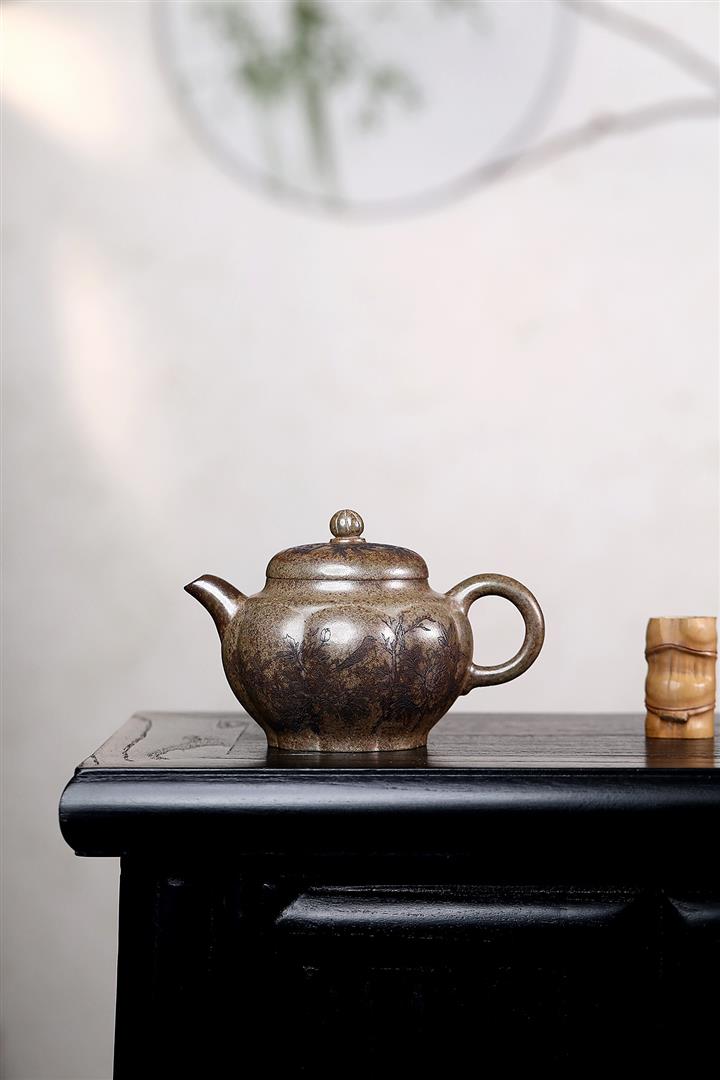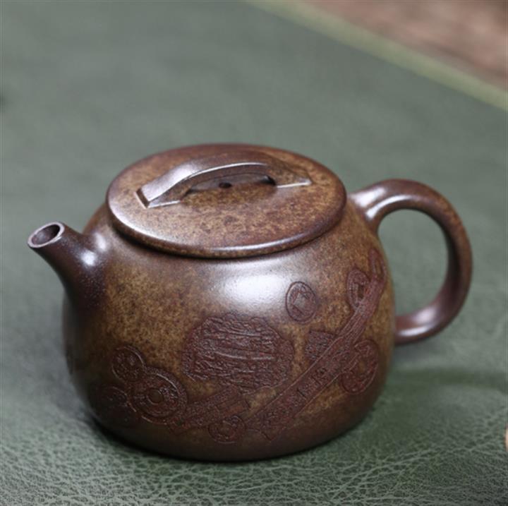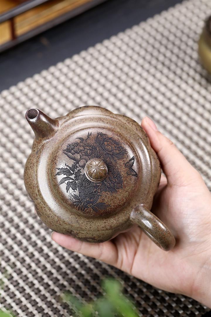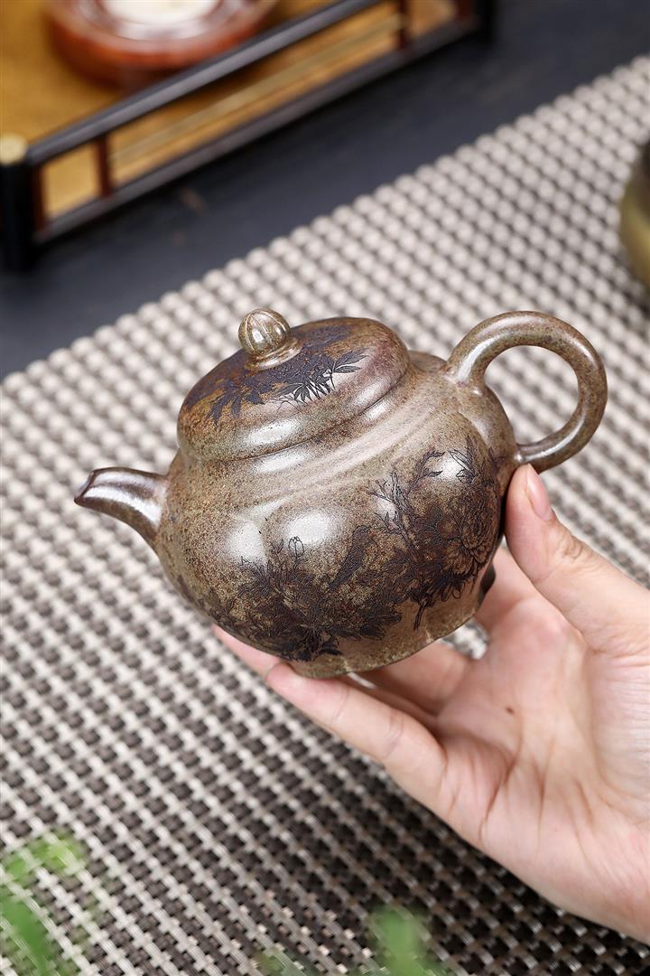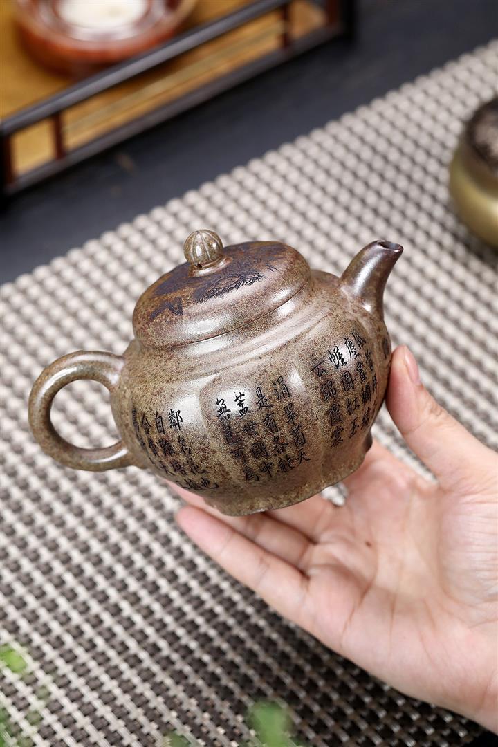原礦降坡泥手刻觀山桑盤茶壺POT7138