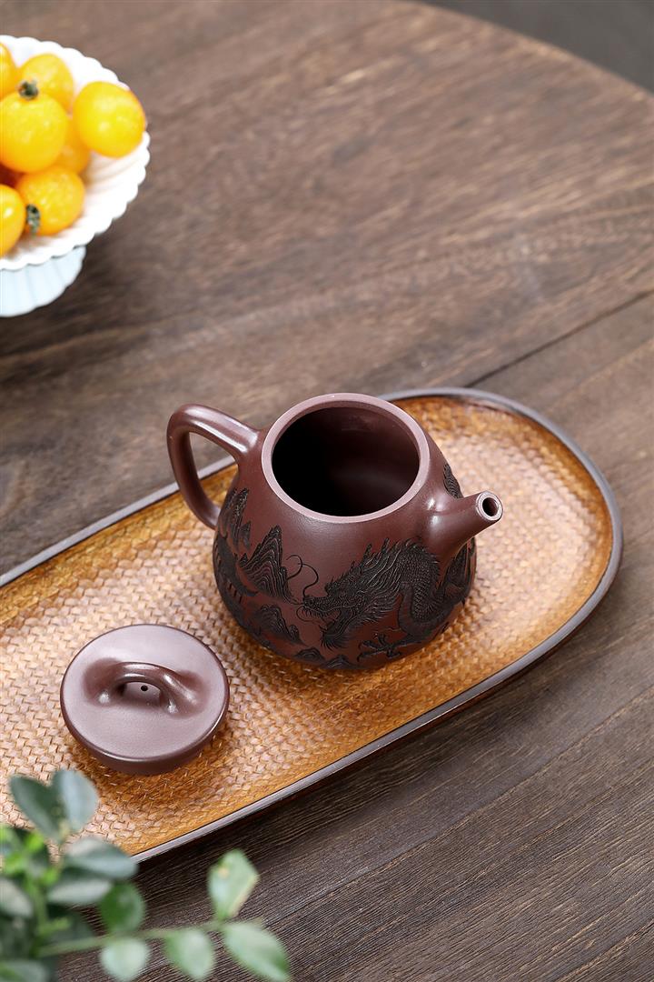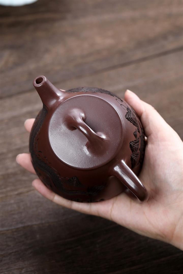 原礦紫泥手工刻繪高石瓢茶壺POT7100