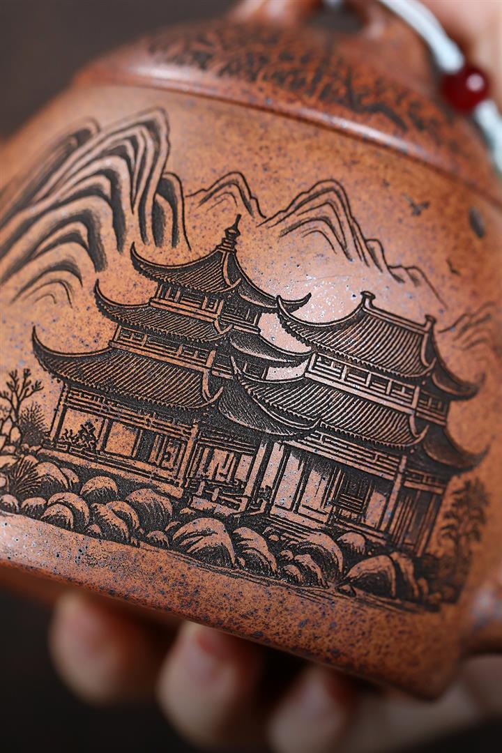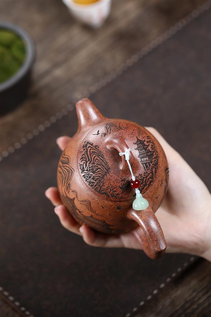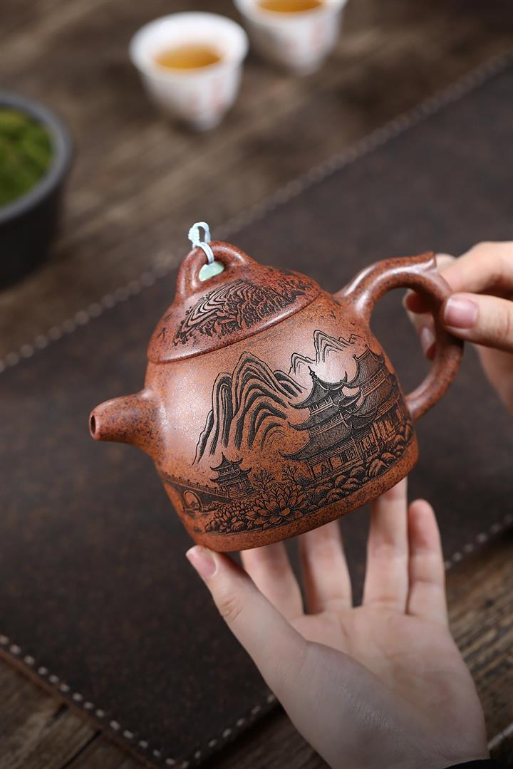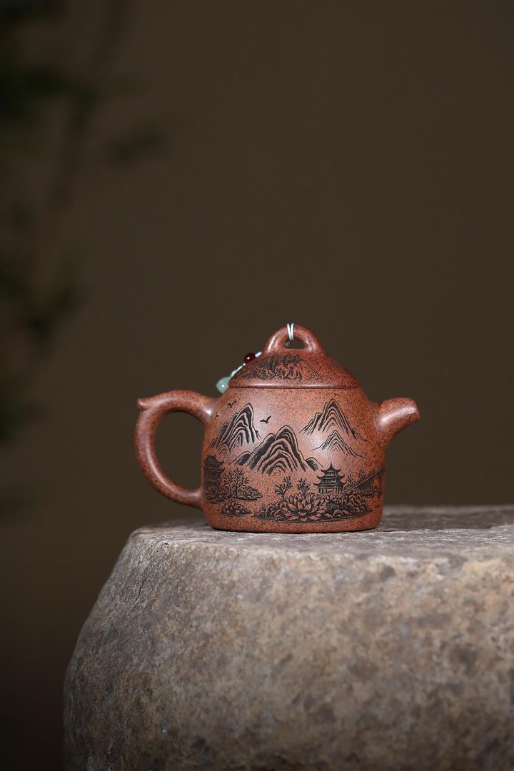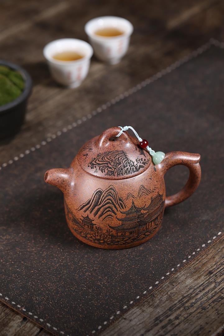 原礦大紅袍手工刻字金潘茶壺POT7120