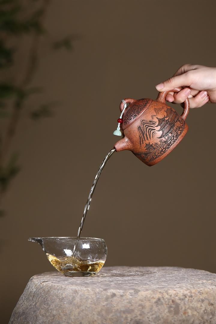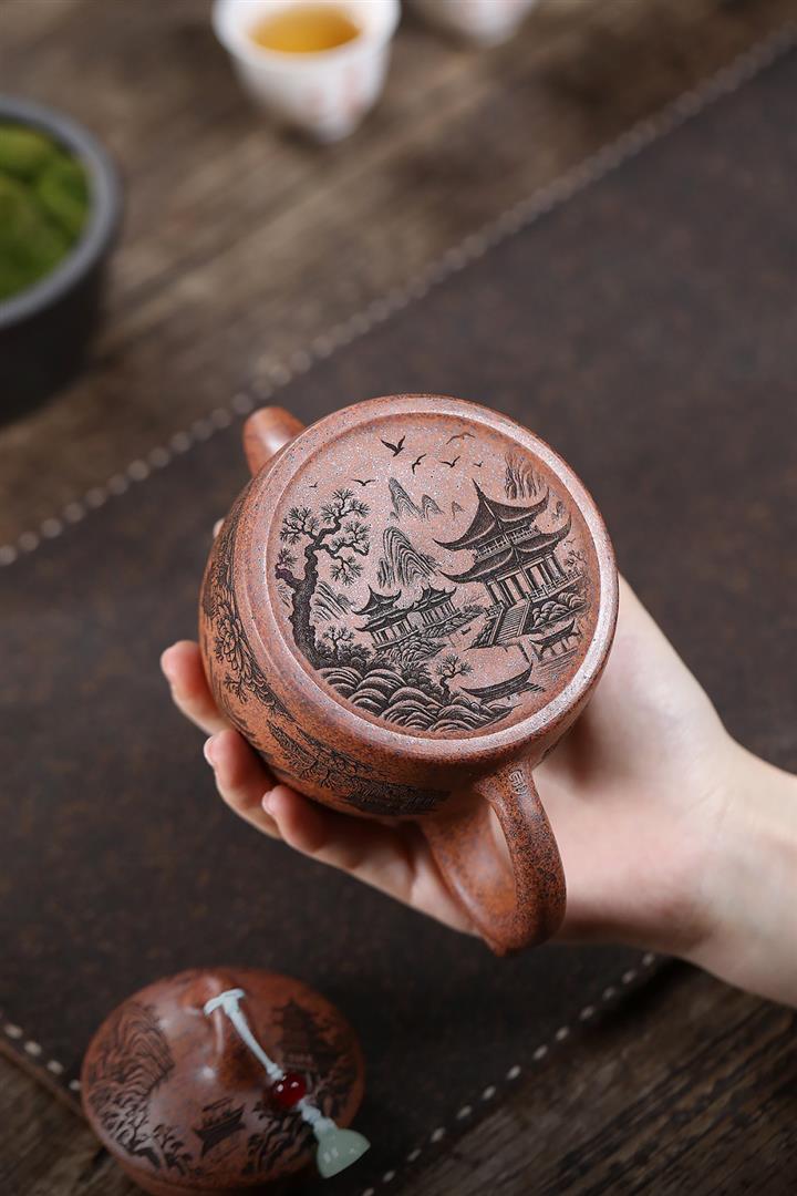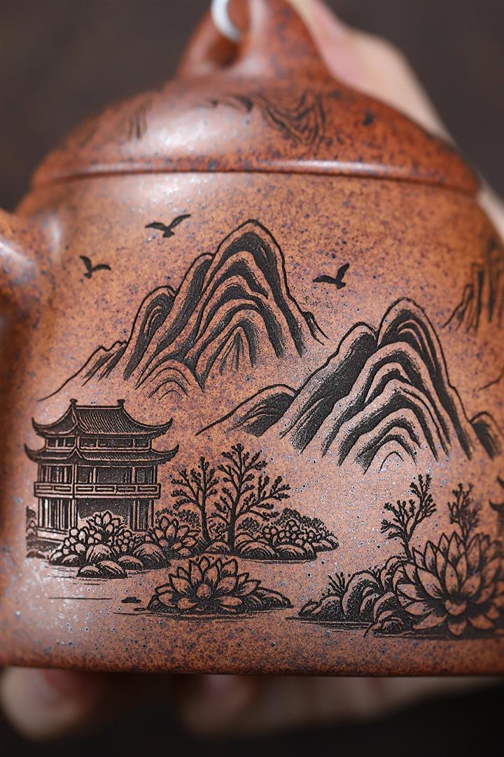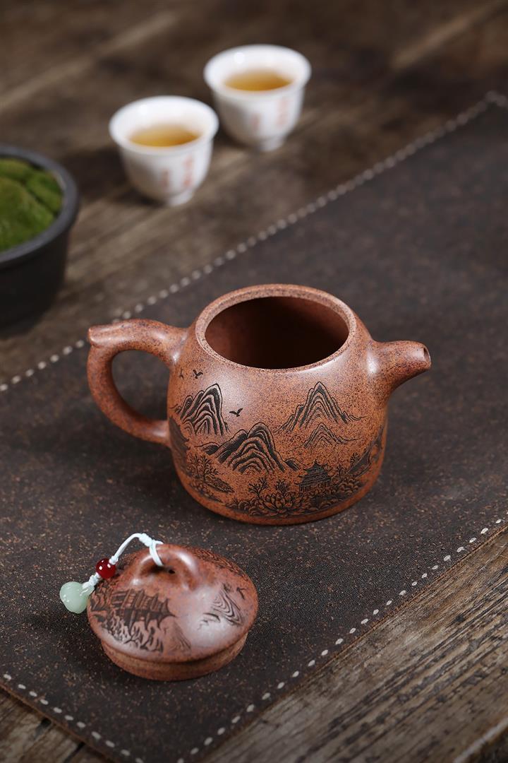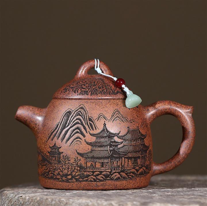 原礦大紅袍手工刻字金潘茶壺POT7120
