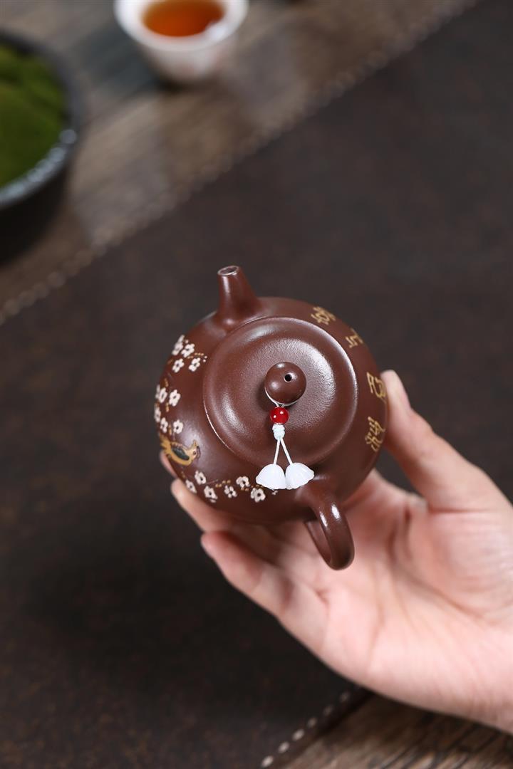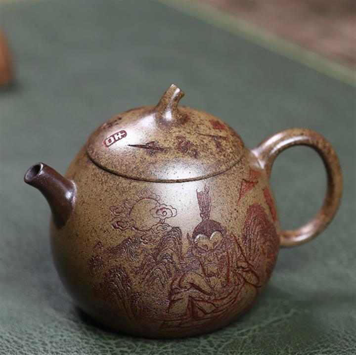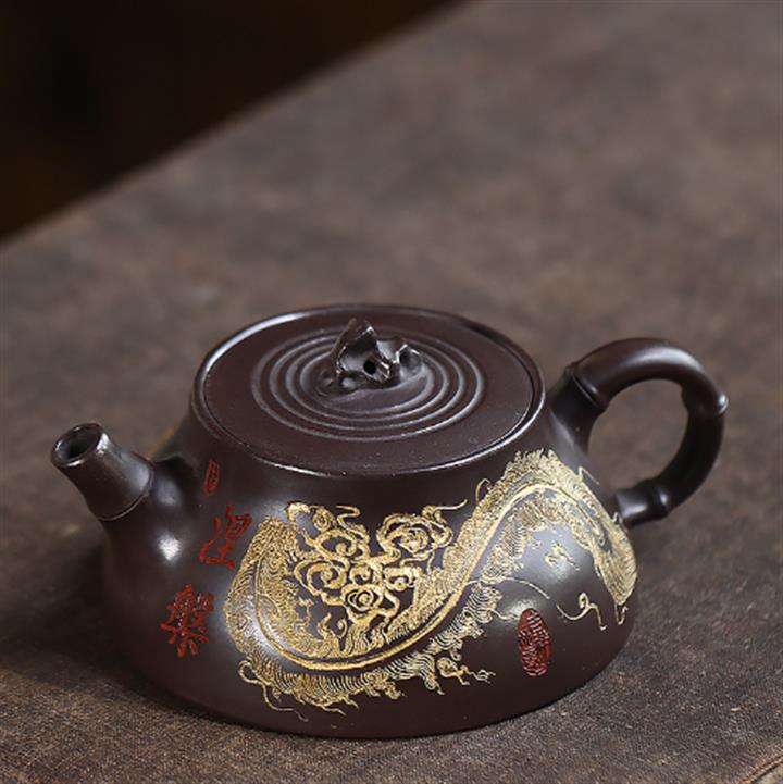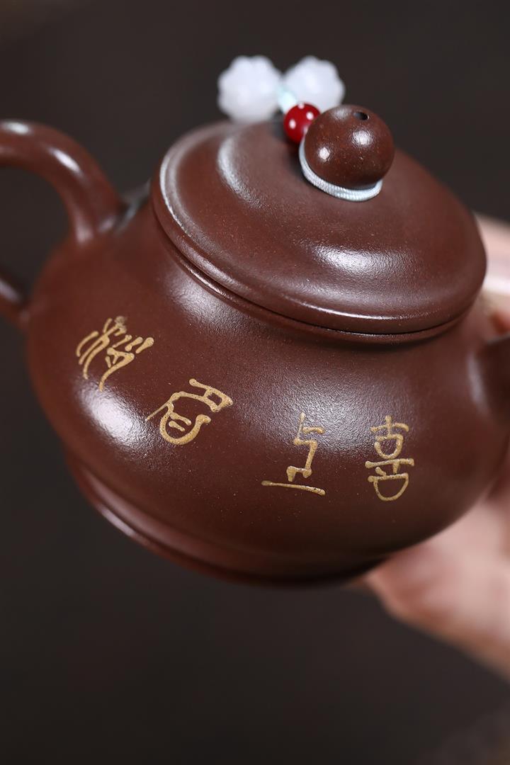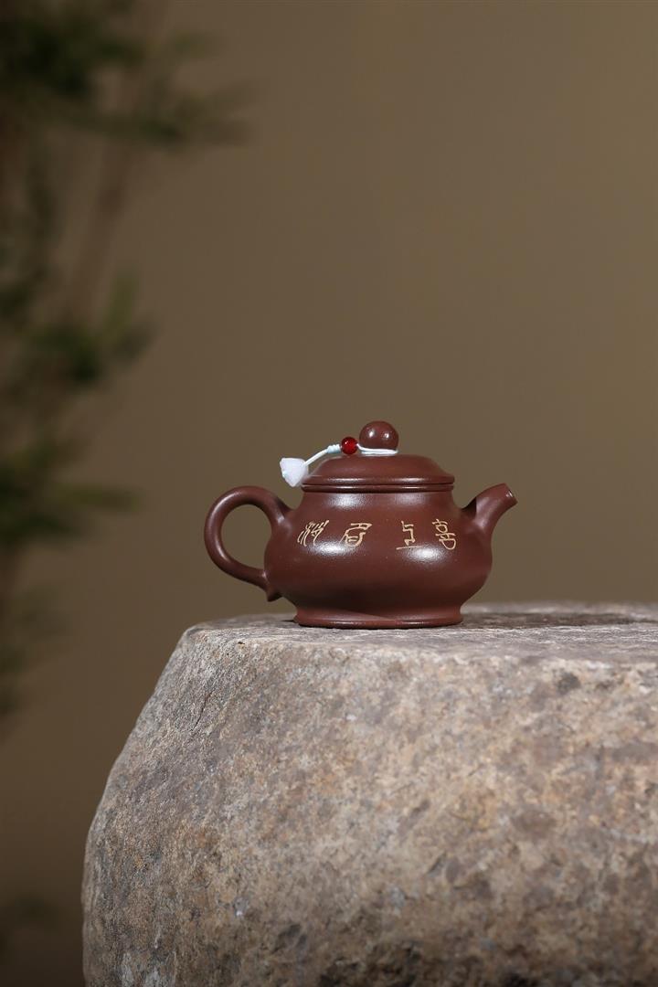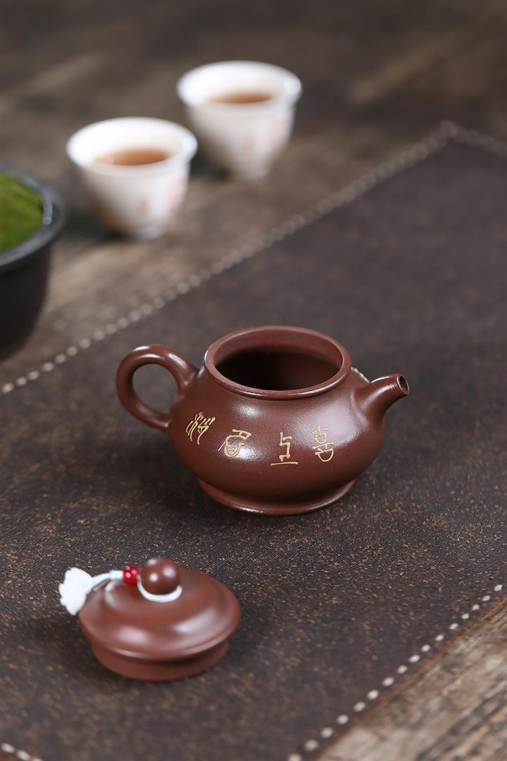 原礦大紅袍手工刻字金潘茶壺POT7120