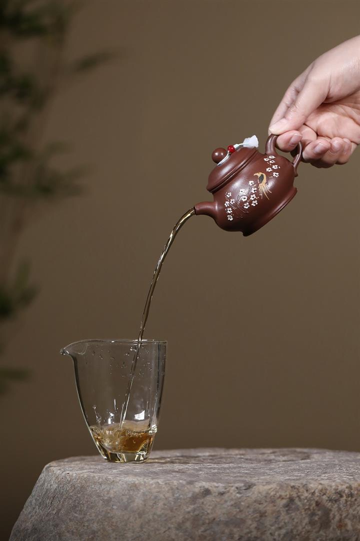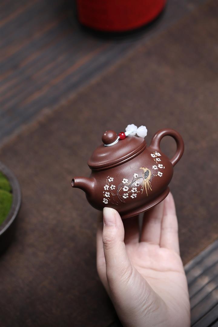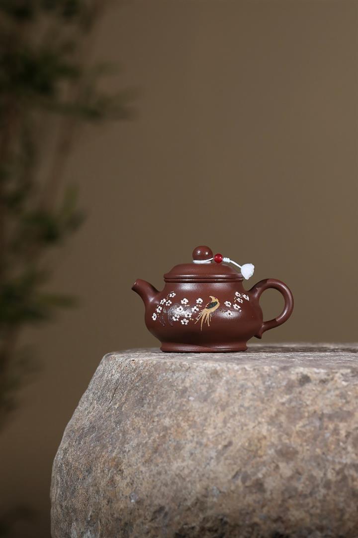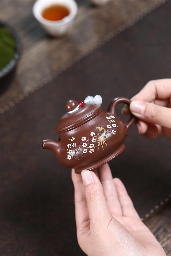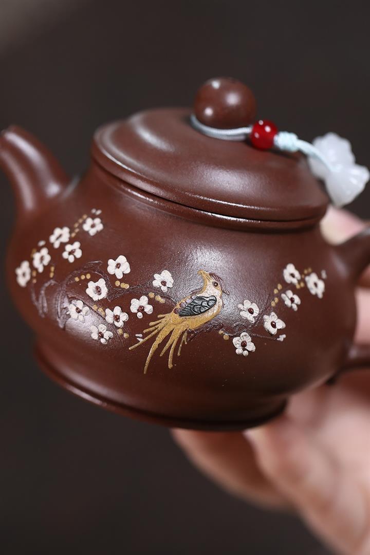 原礦老紫泥泥繪喜上眉梢潘壺POT7119