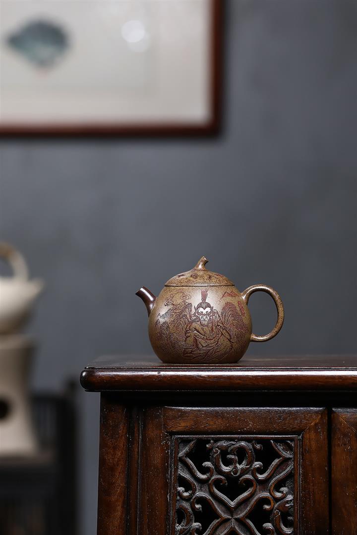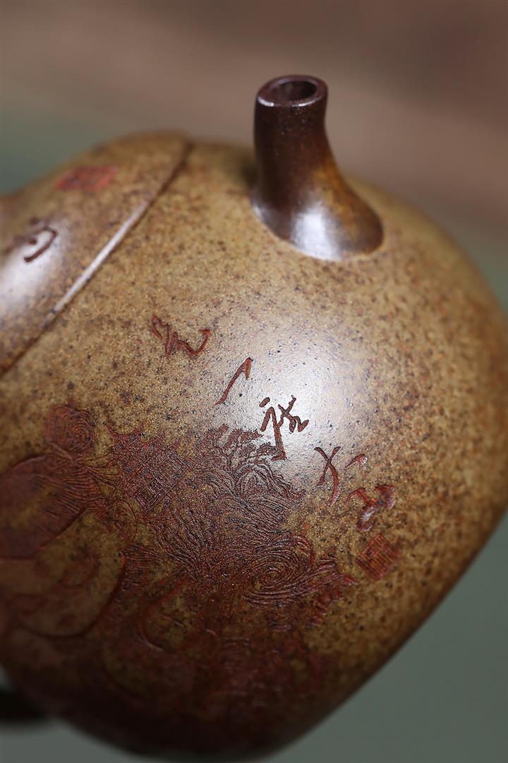 原礦紫泥五虎景舟石瓢滿瓢茶壺POT7144