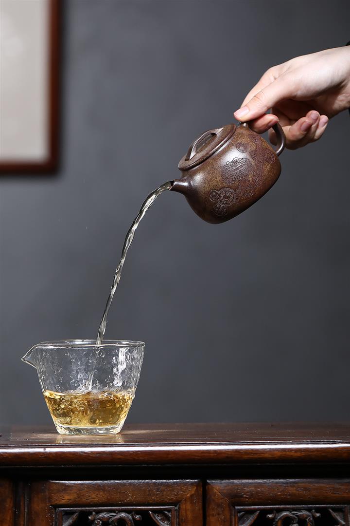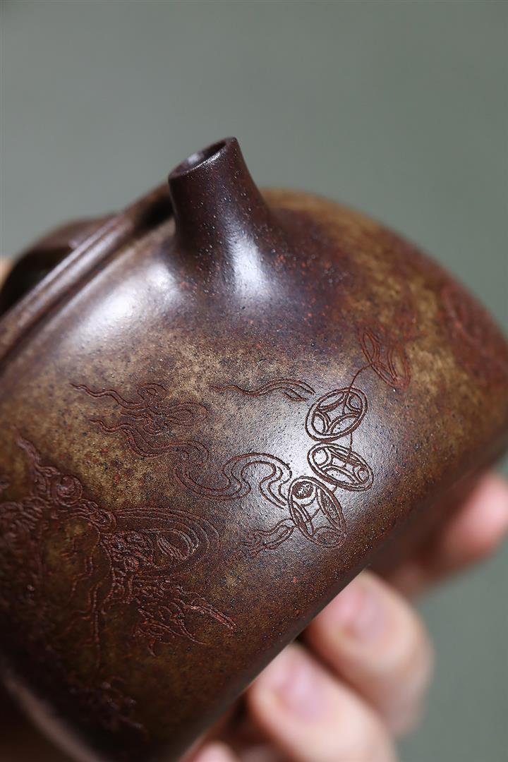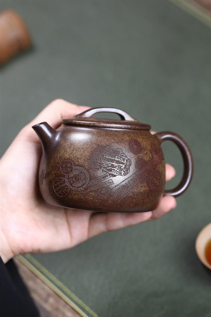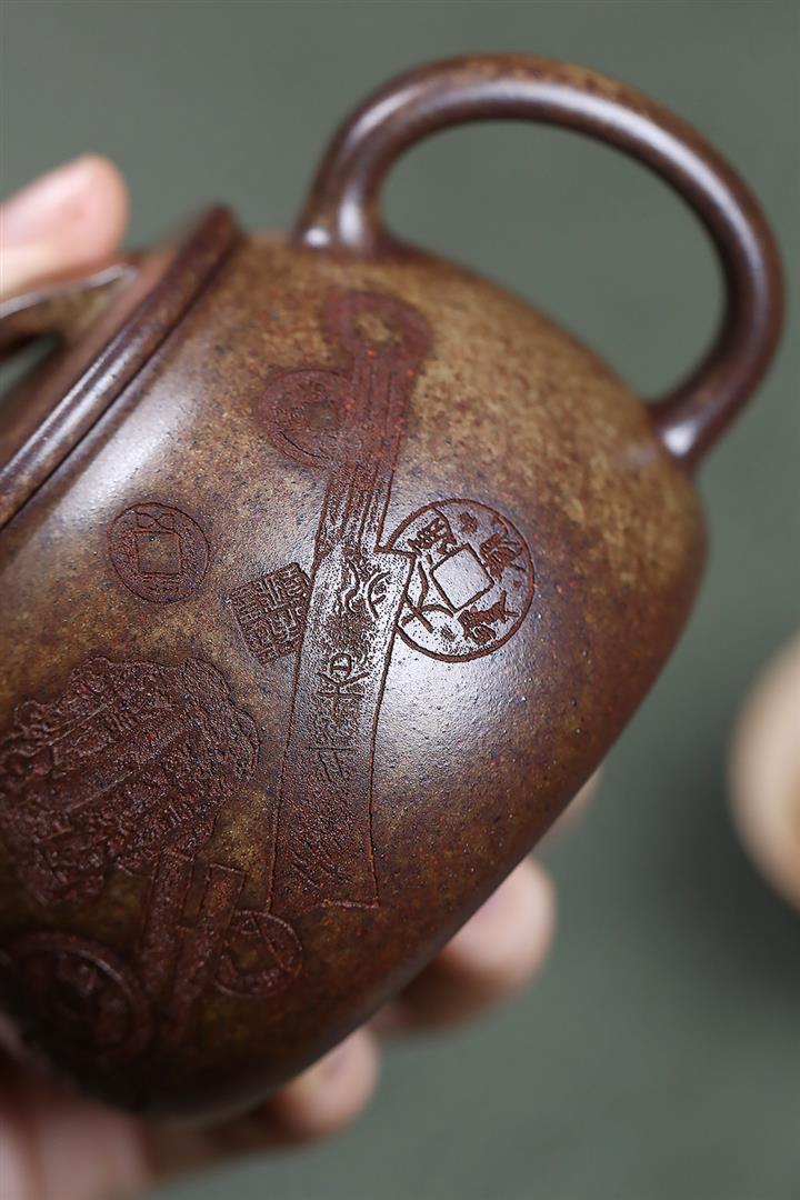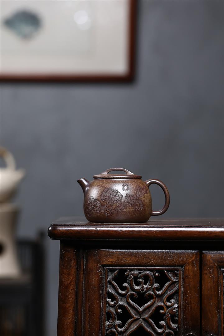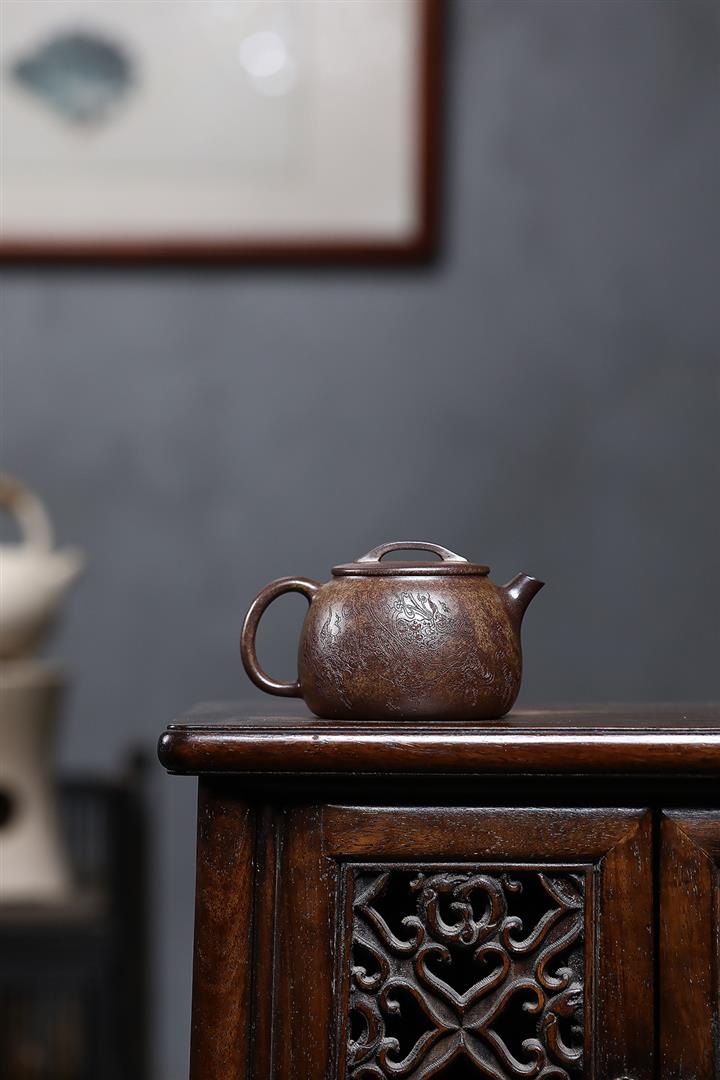原礦降坡泥手刻觀山桑盤茶壺POT7138