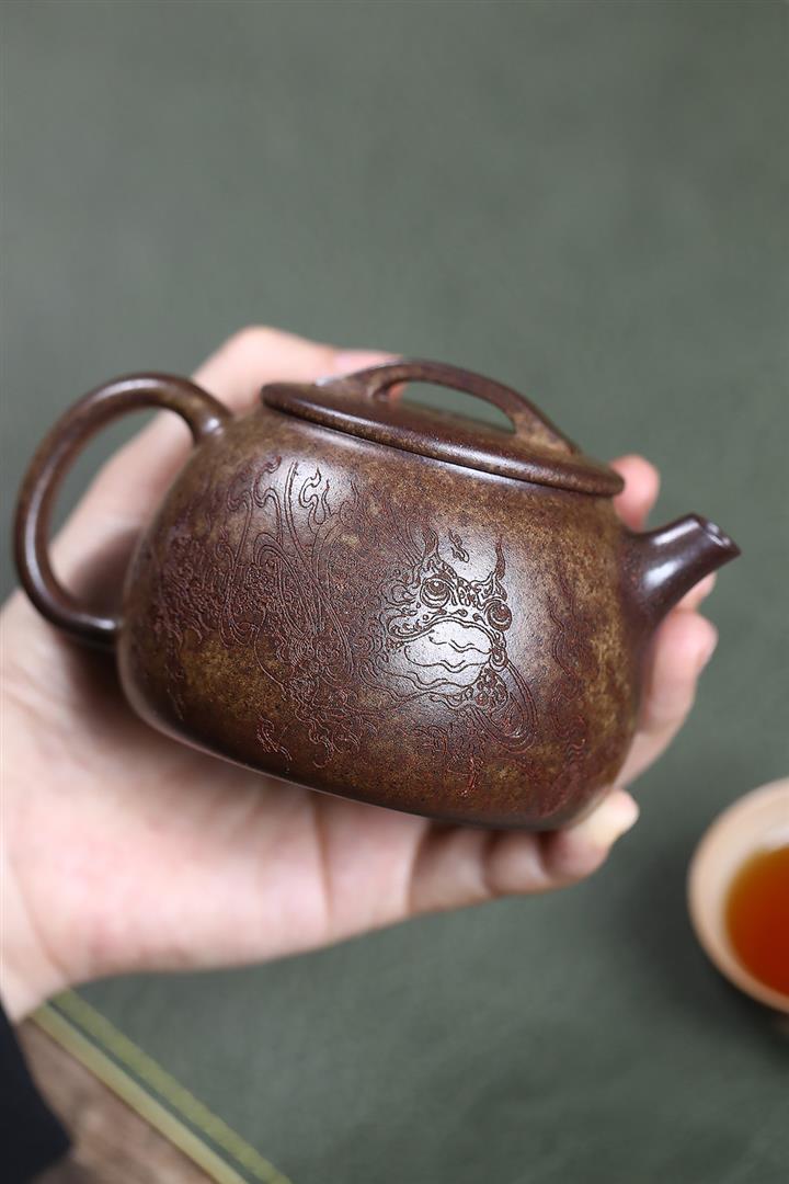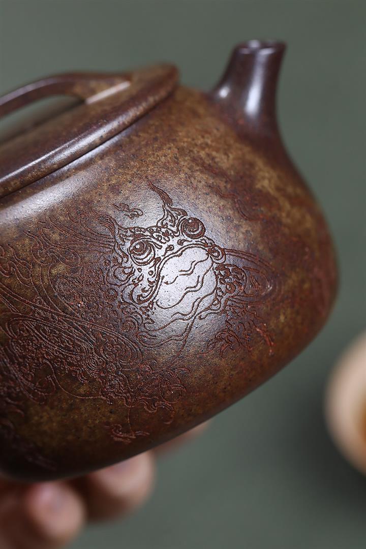 原礦紅降坡滿刻松鼠漢瓦茶壺POT7163