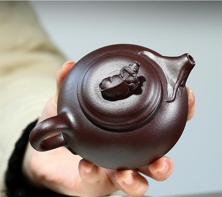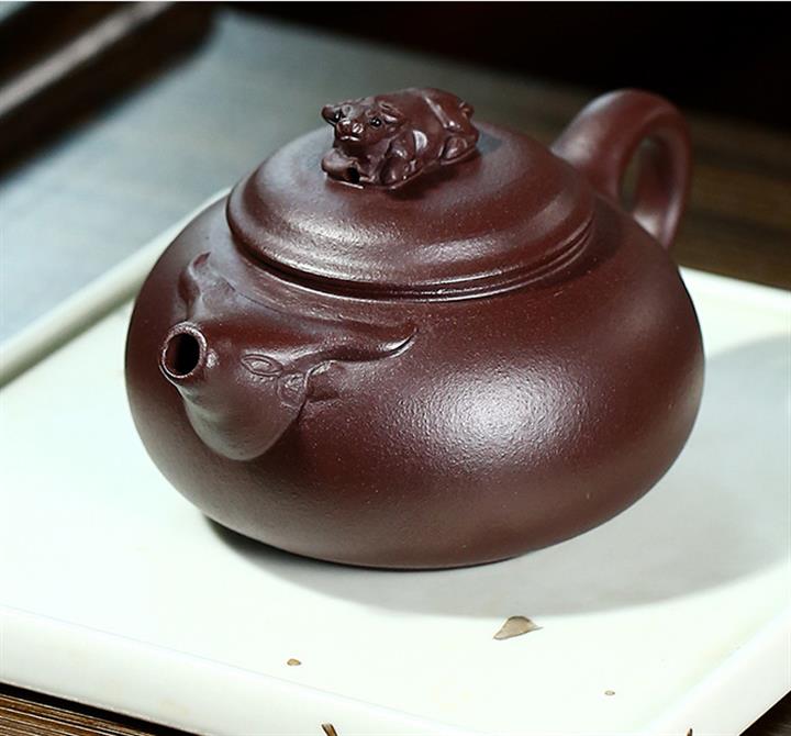 原礦紅降坡滿刻松鼠漢瓦茶壺POT7163