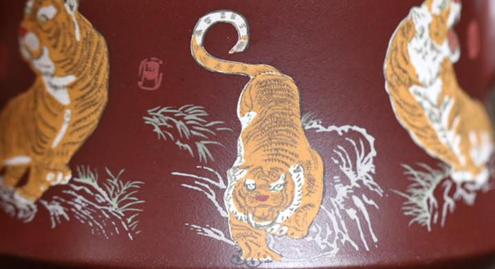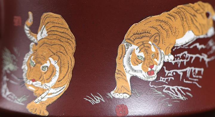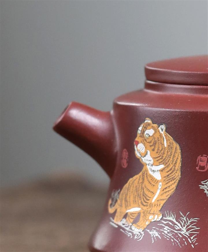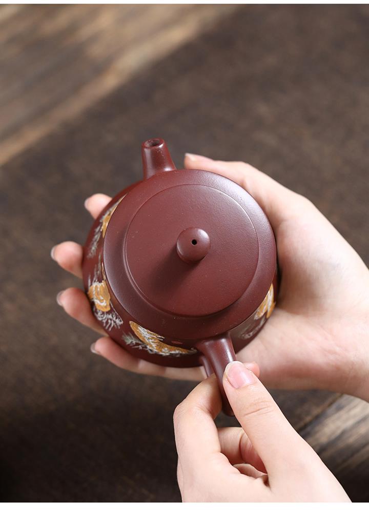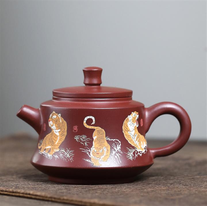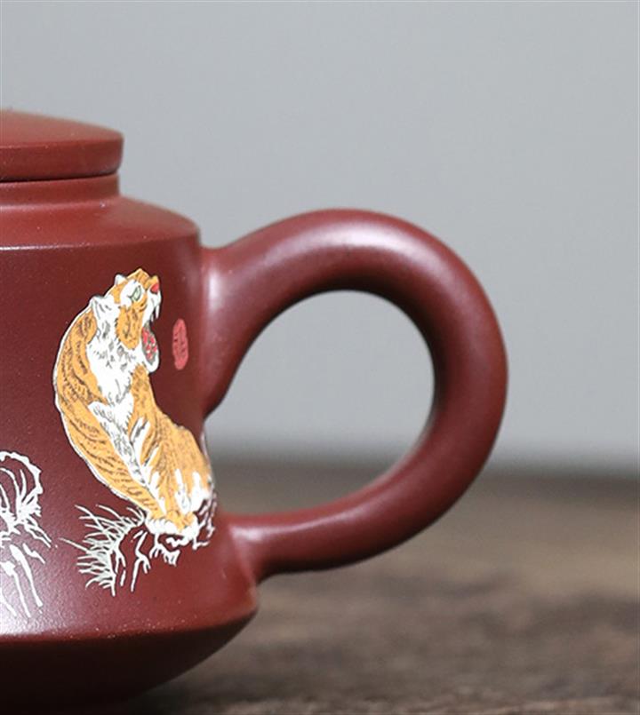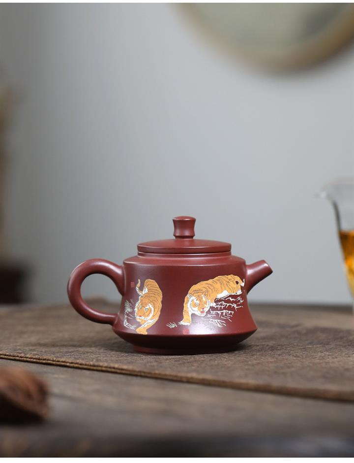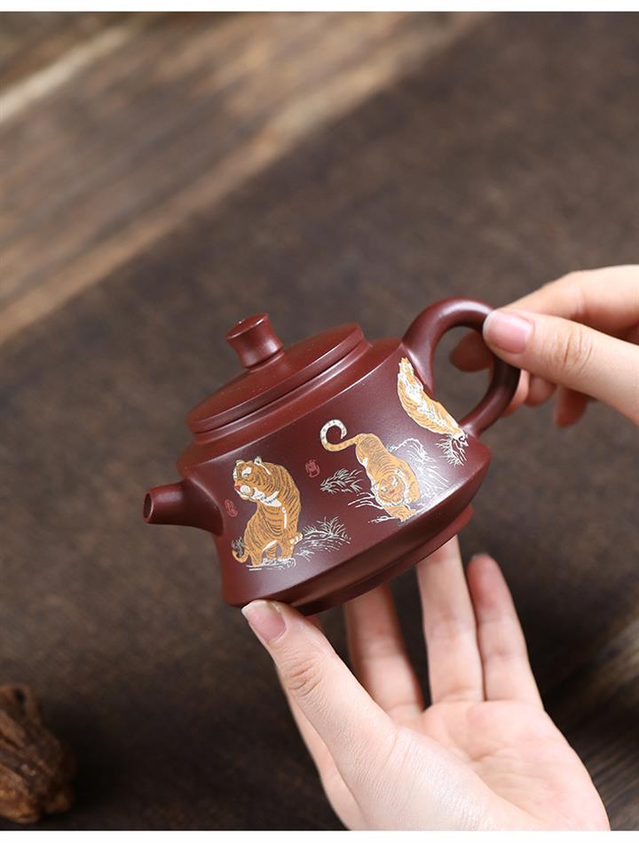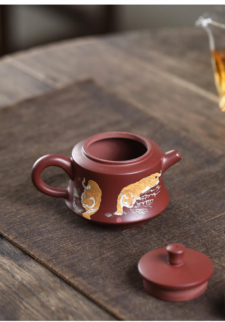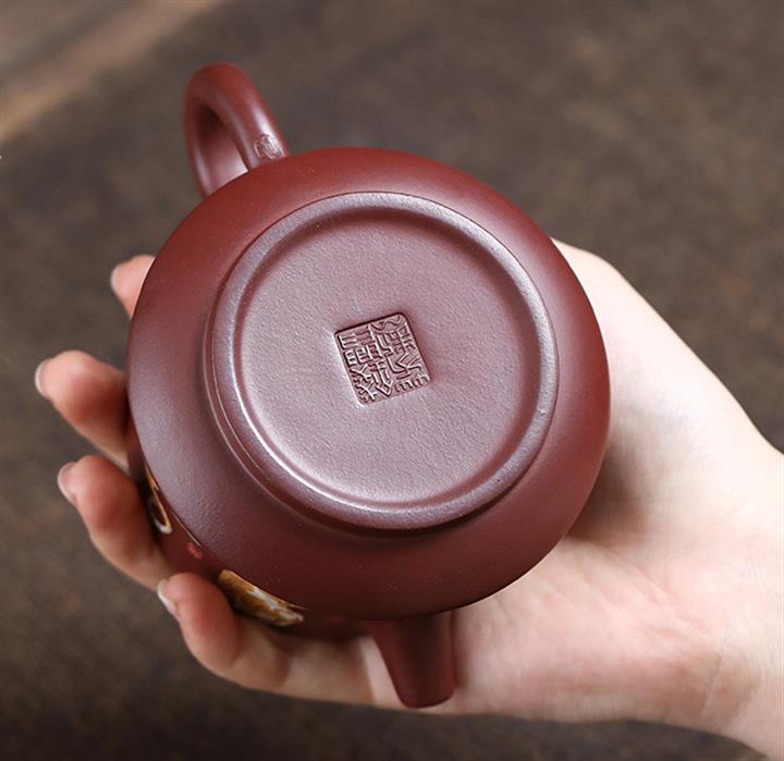 原礦紅皮龍滿刻山水漢瓦茶壺POT7226