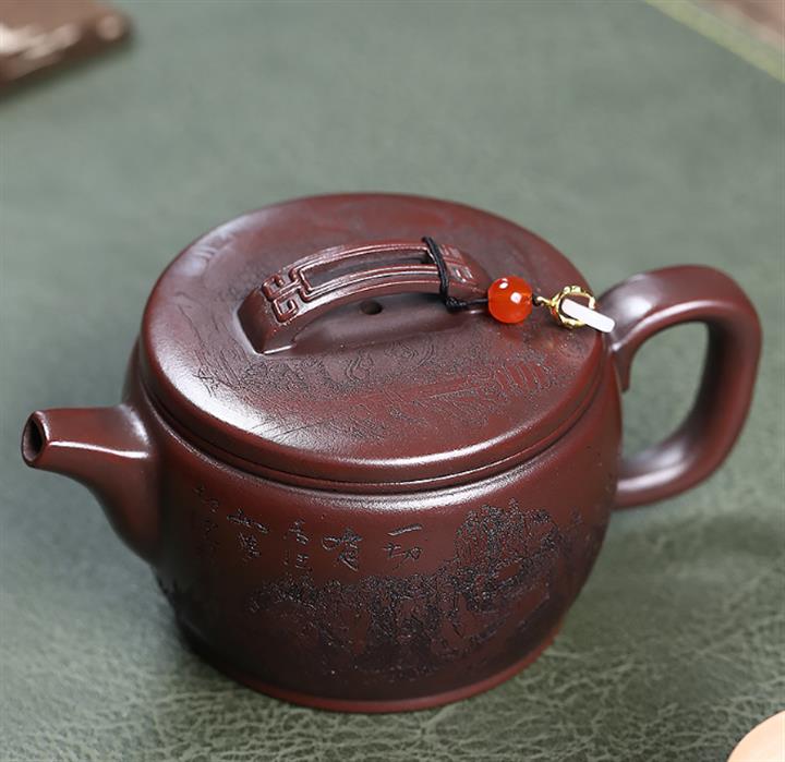 原礦紅皮龍滿刻山水漢瓦茶壺POT7226