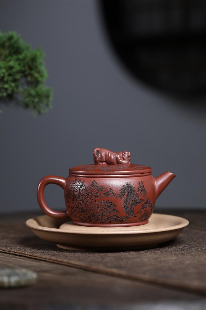 原礦紅降坡滿刻松鼠漢瓦茶壺POT7163