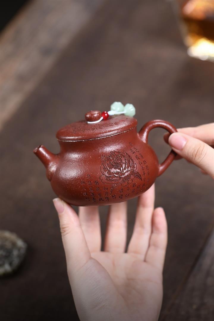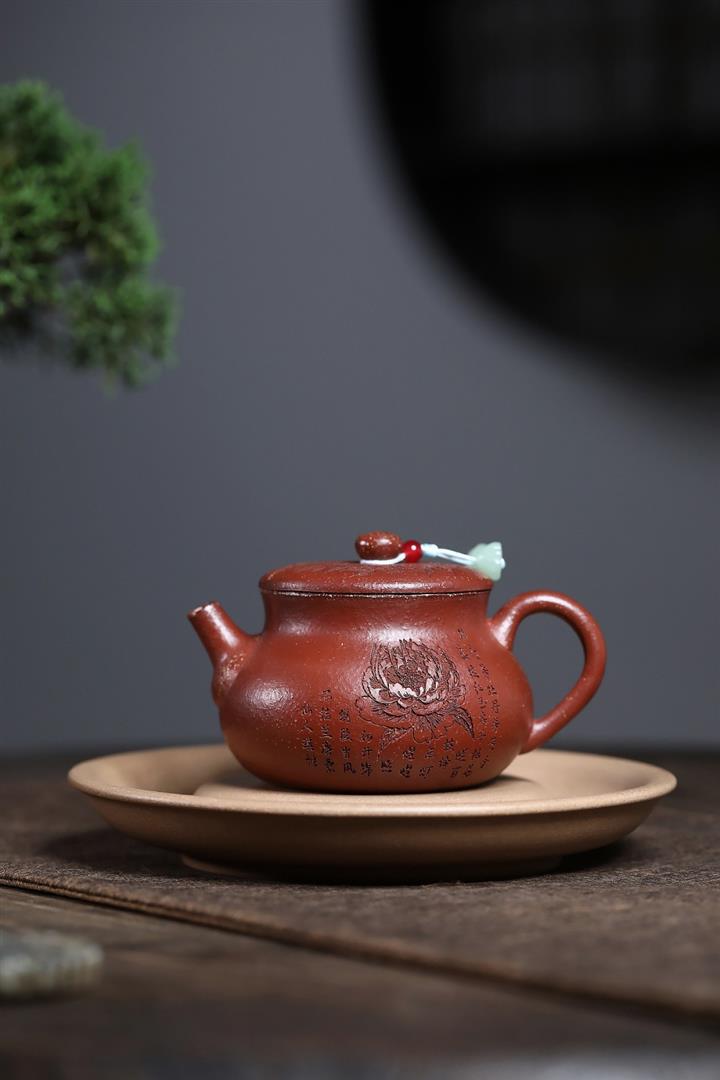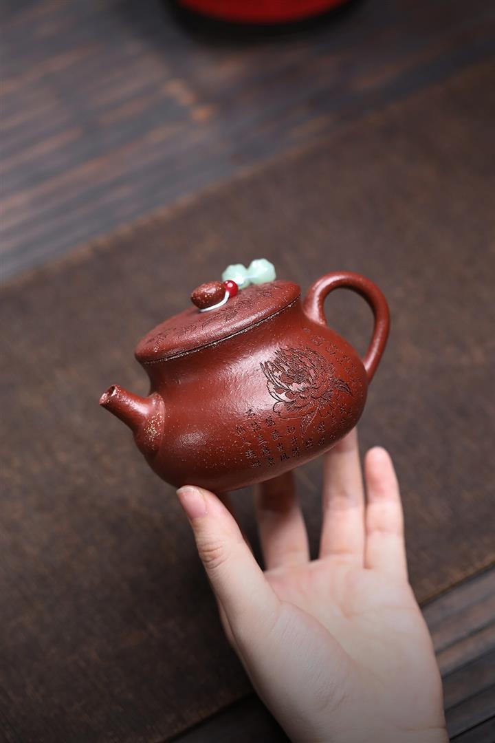 原礦粗砂朱泥金葉曼殊茶壺POT7183