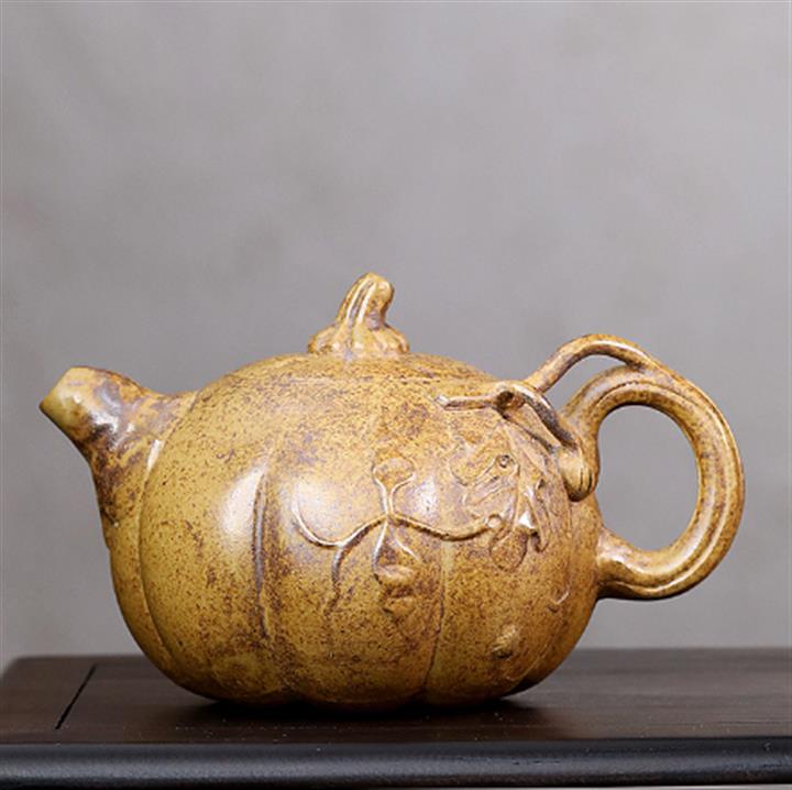 原礦粗砂朱泥金葉漢雲壺POT7184