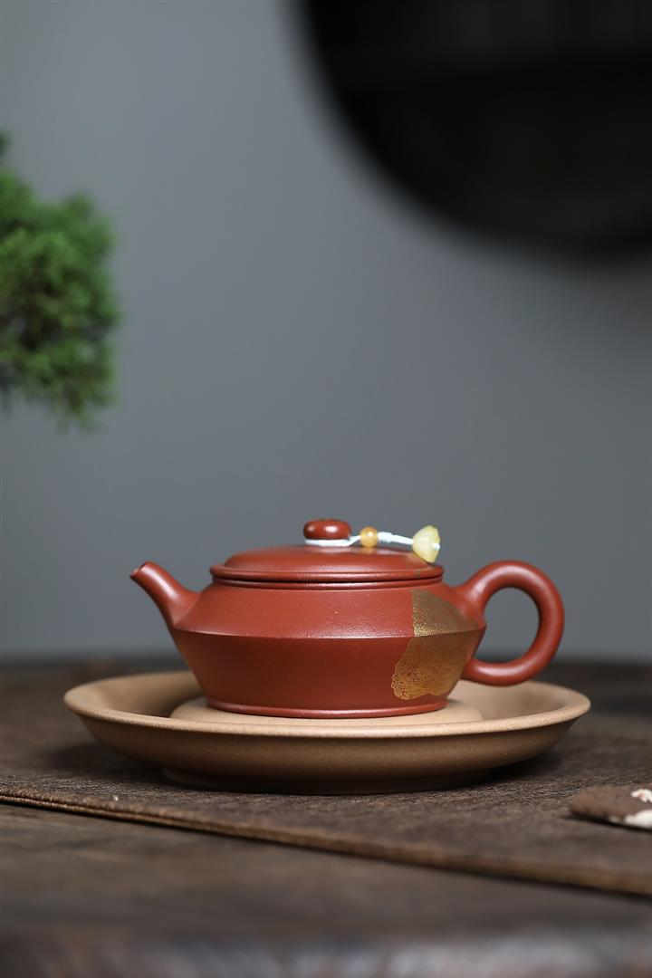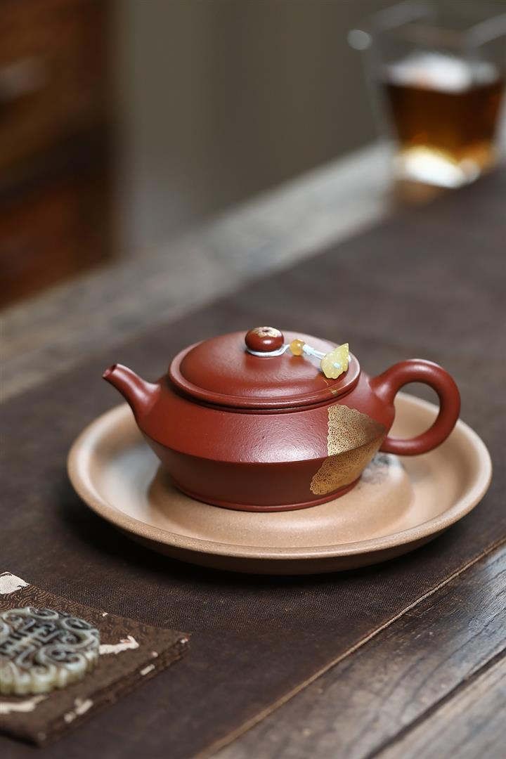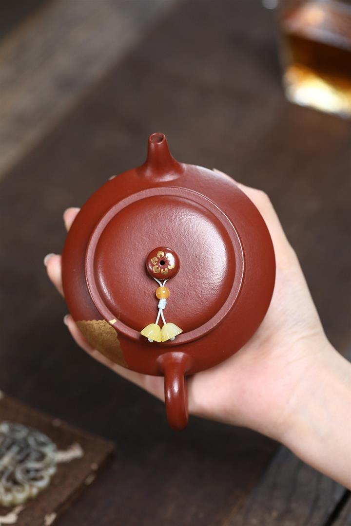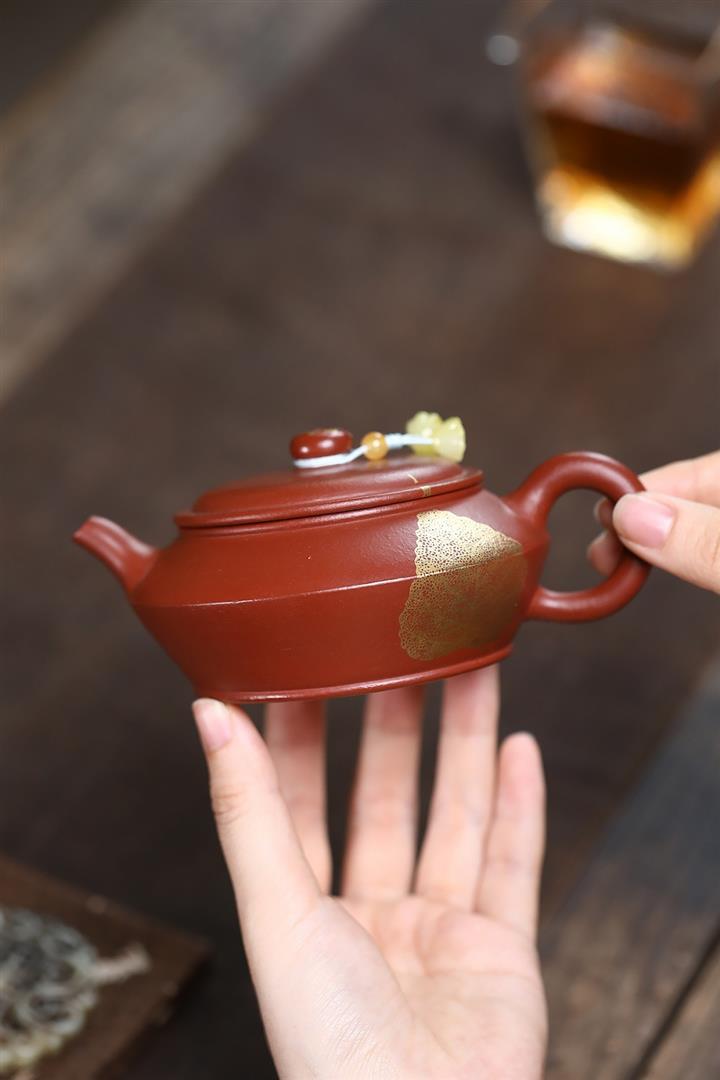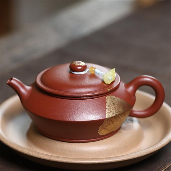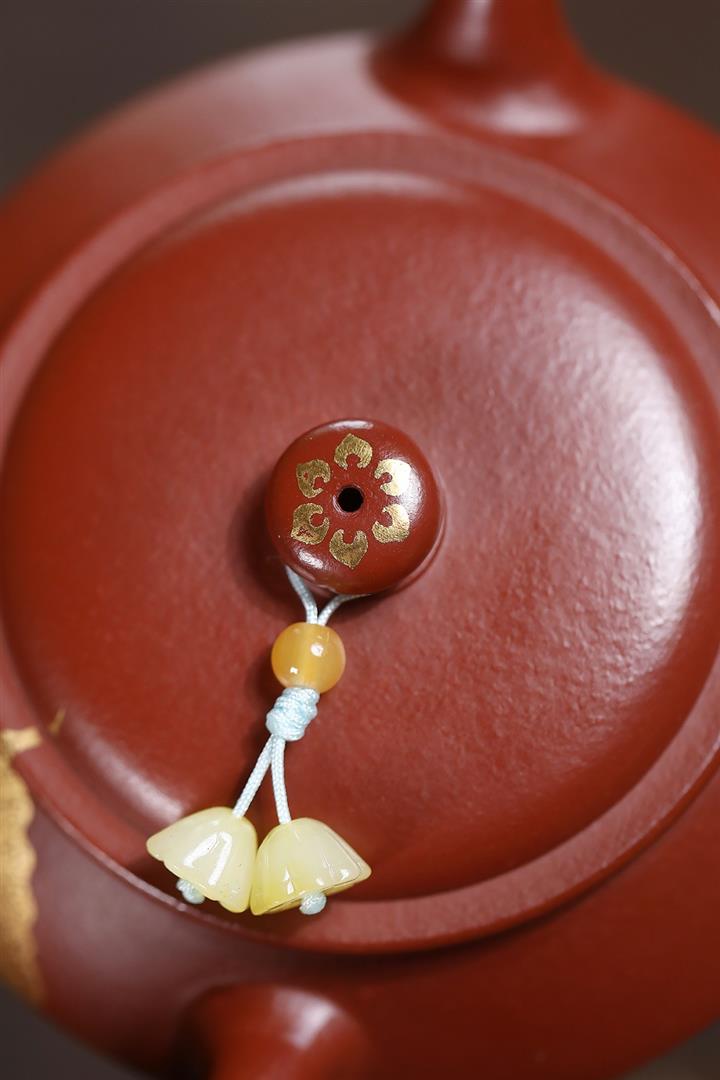 原礦粗砂朱泥金葉曼殊茶壺POT7183