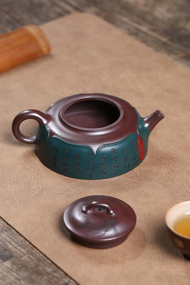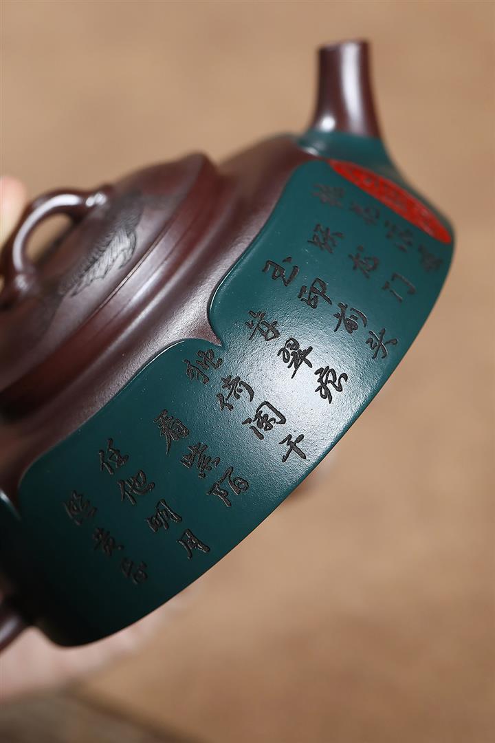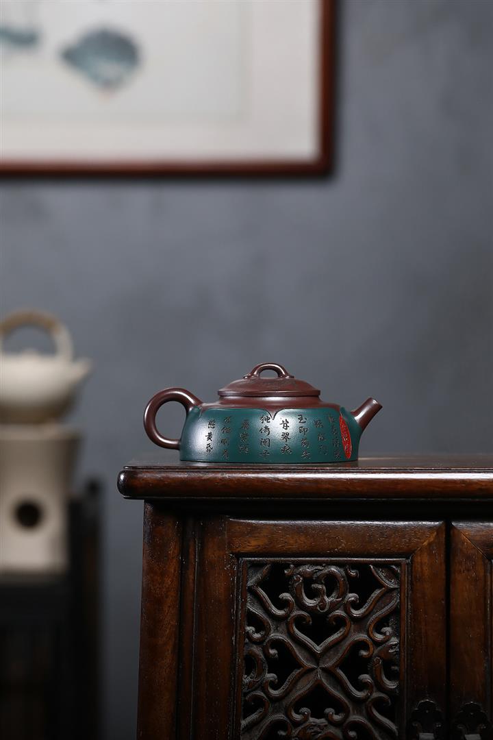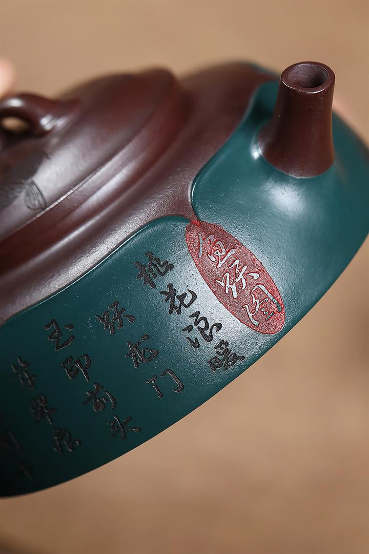 原礦墨綠泥描金銀湖石東亭茶壺POT7303