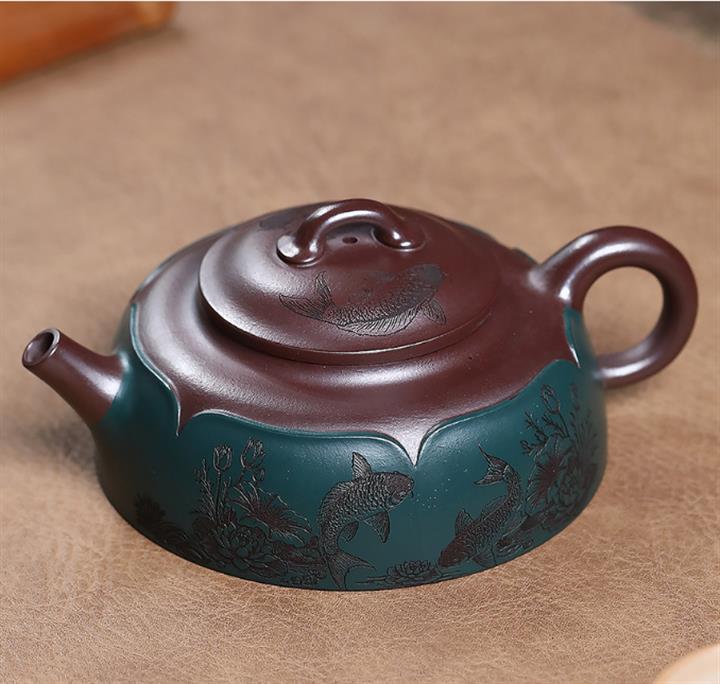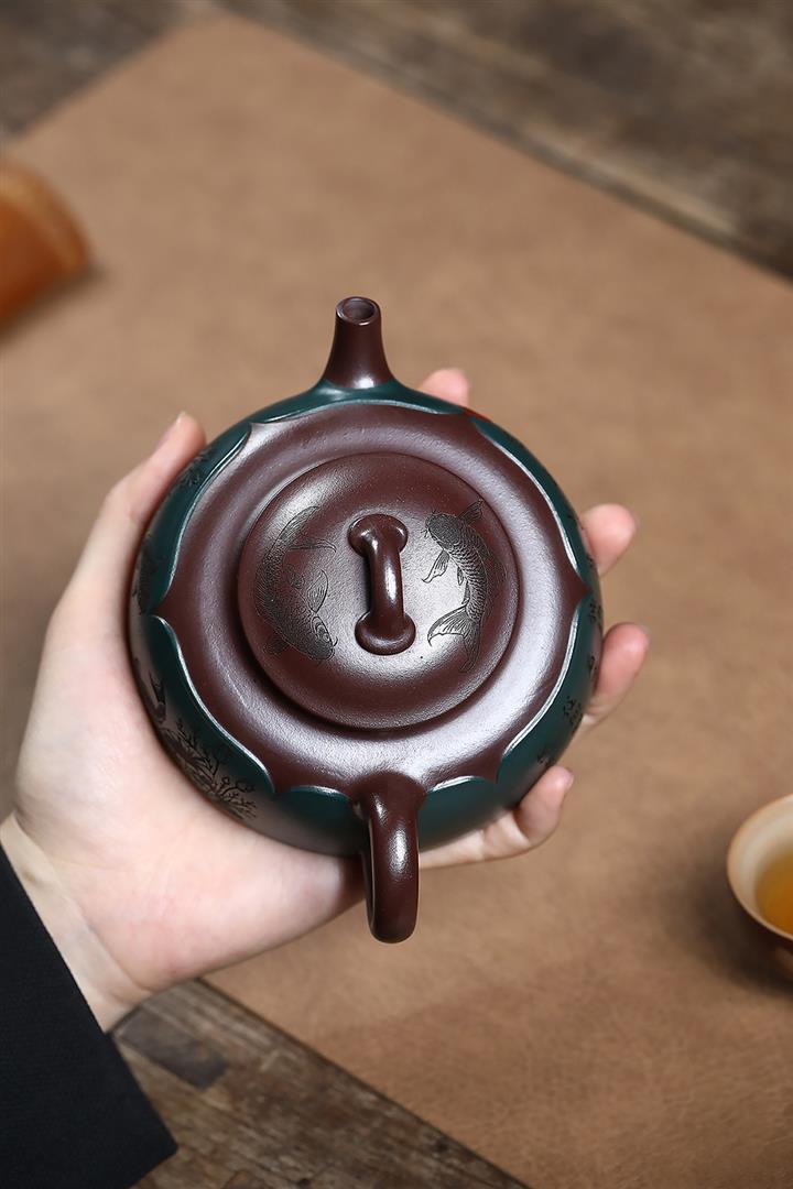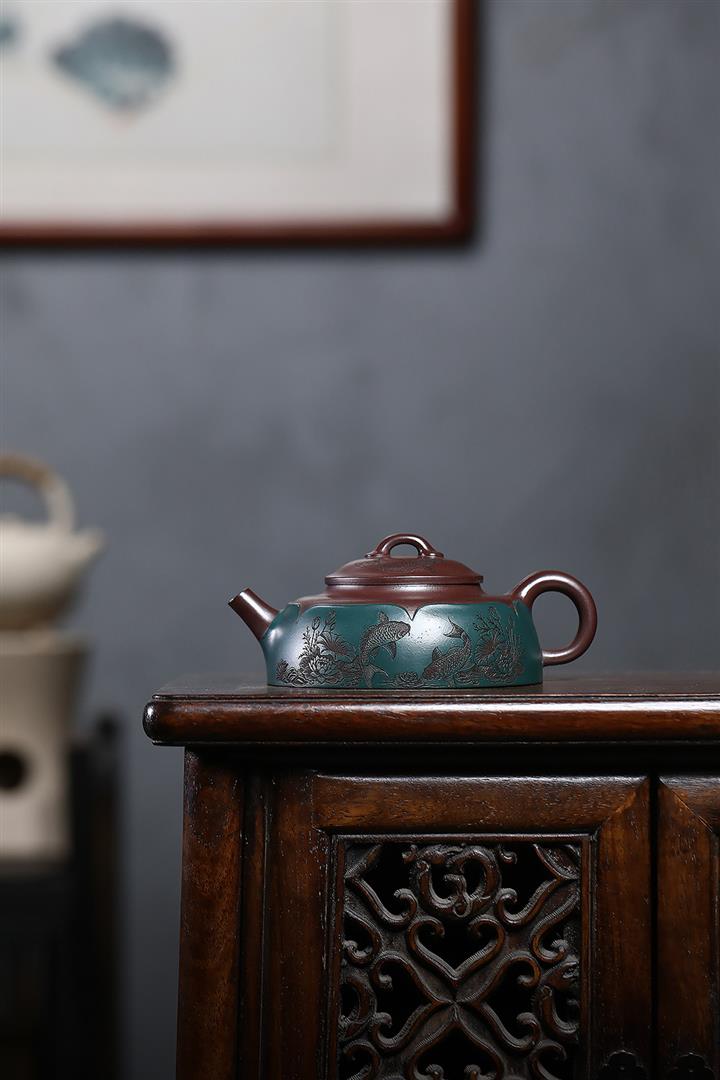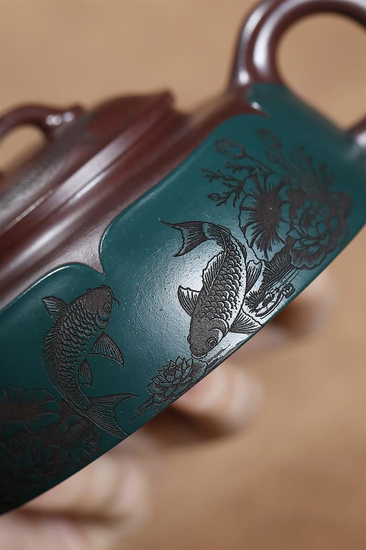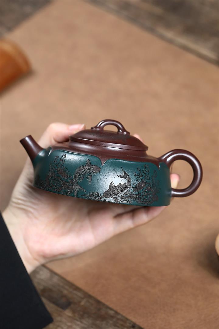 原礦紫泥綠泥雙魚半月茶壺POT7198