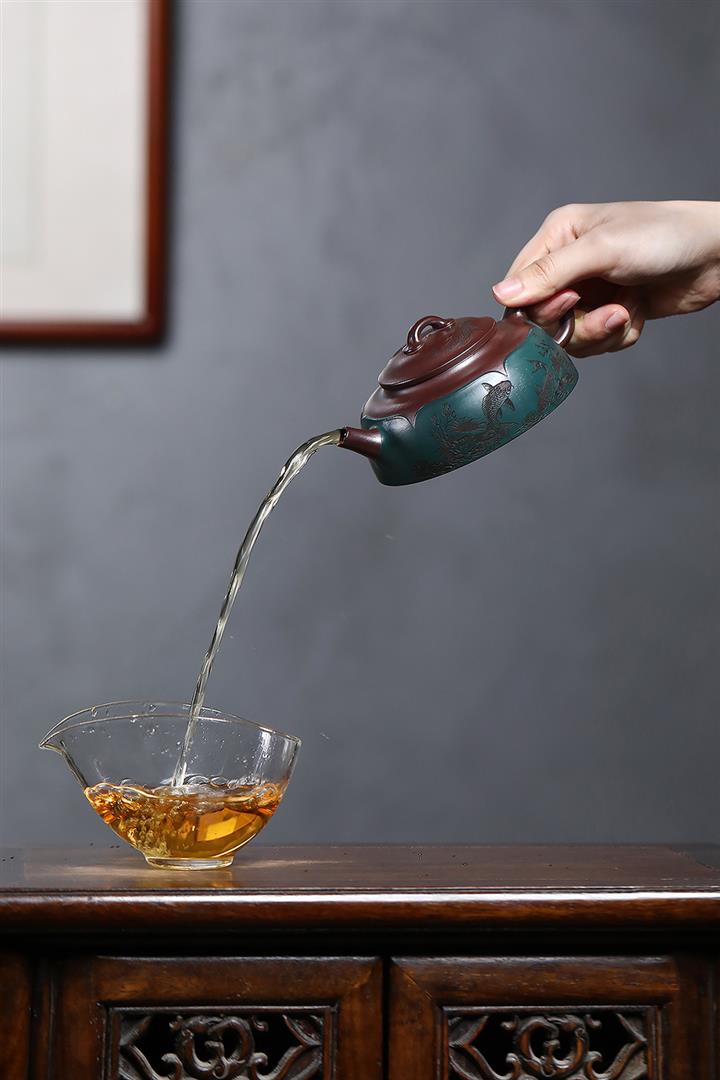 紫砂使用越久,壺身色澤越發光亮照人,氣韻溫雅。紫砂壺長久使用器身會因撫摸擦拭,變得越發溫潤光澤!
