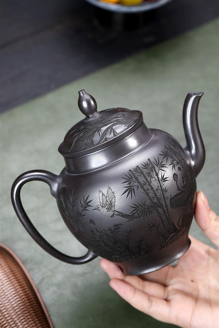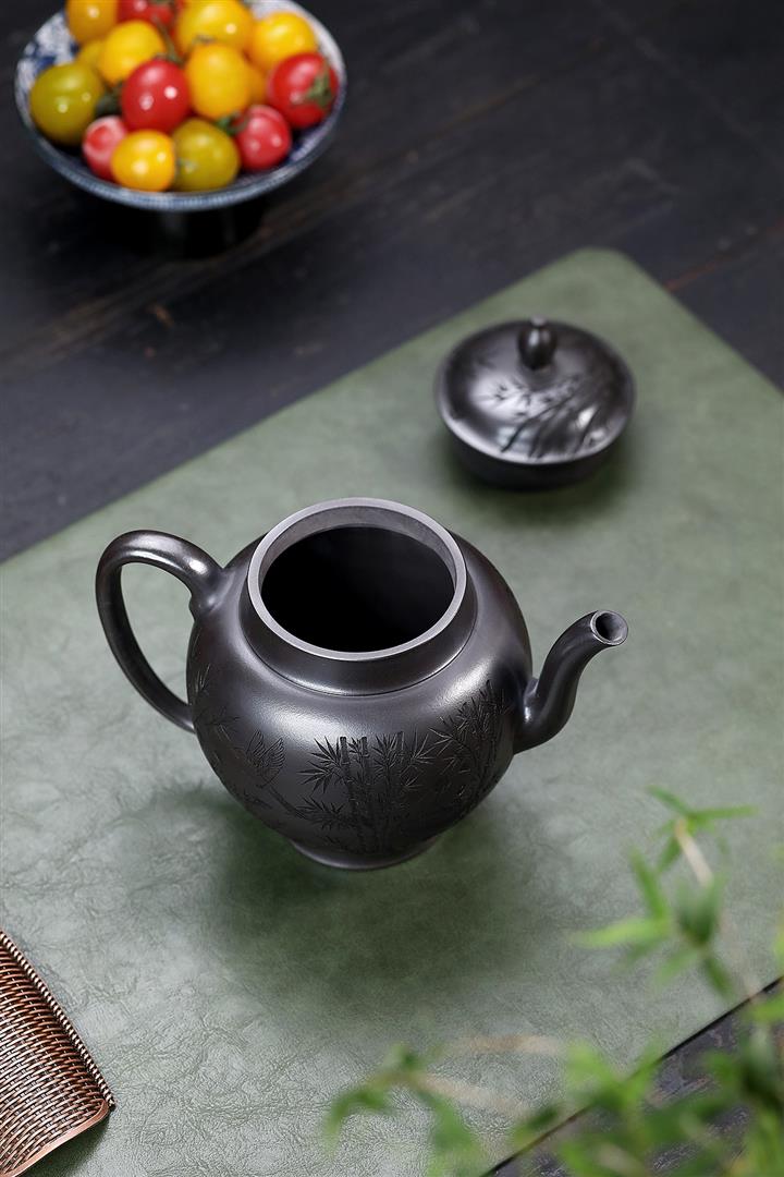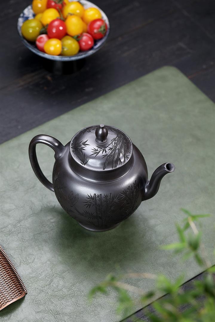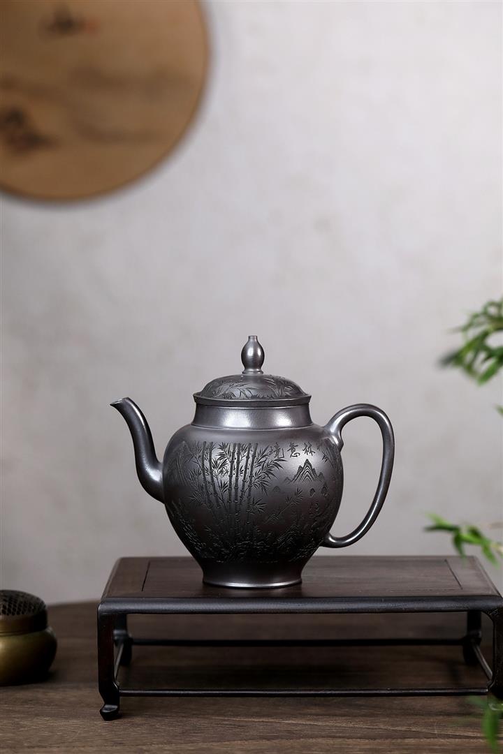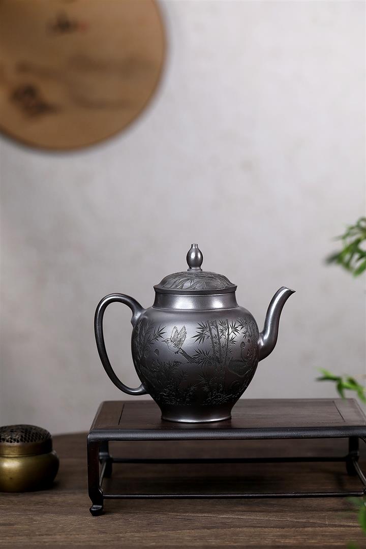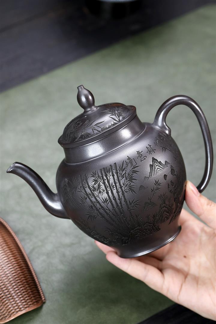 原礦家藏降坡泥滿刻牡丹容天茶壺POT7241