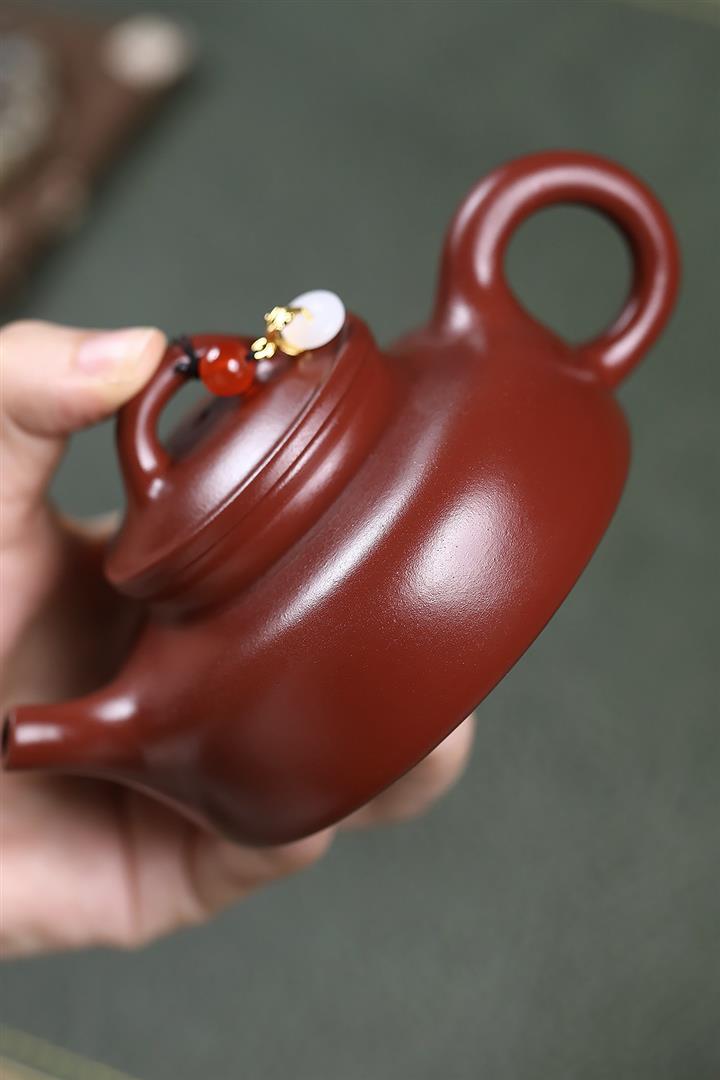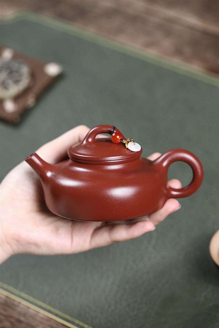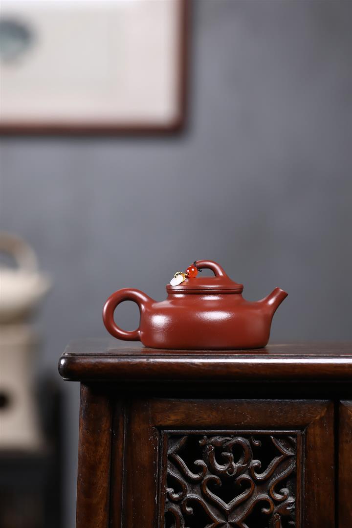 原礦紅皮龍滿刻山水漢瓦茶壺POT7226