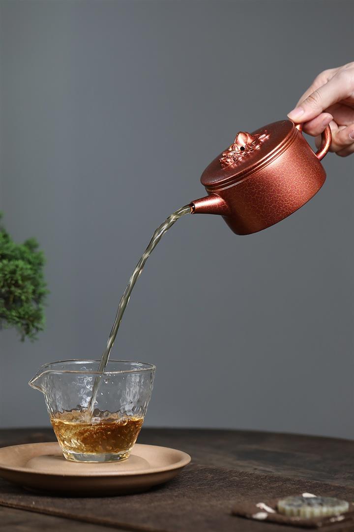 紫砂使用越久,壺身色澤越發光亮照人,氣韻溫雅。紫砂壺長久使用器身會因撫摸擦拭,變得越發溫潤光澤!