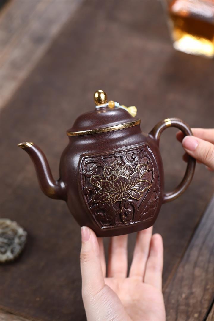 原礦沈香泥描金浮雕宮燈茶壺POT7217