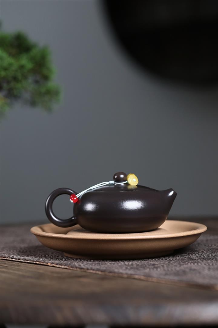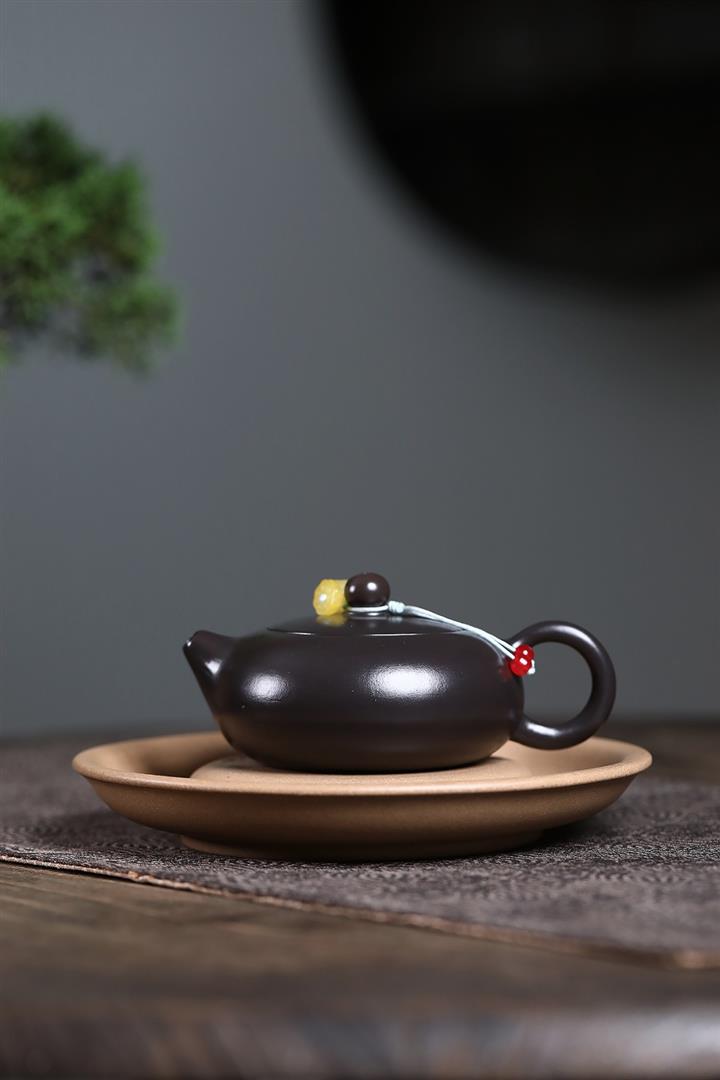原礦黑朱泥焐灰扁西施茶壺POT7221