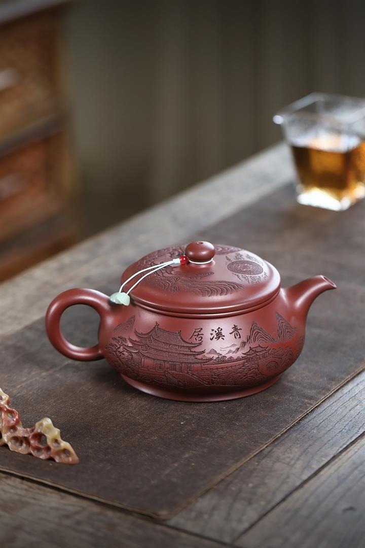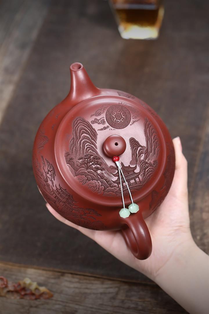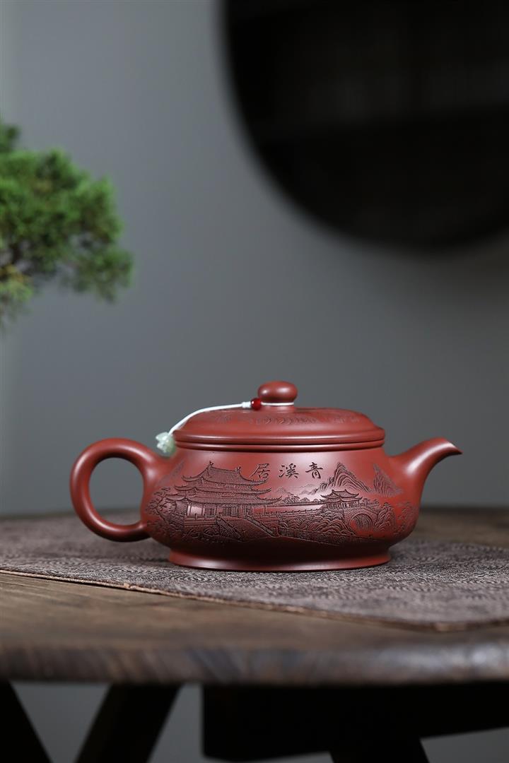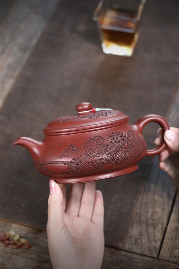原礦家藏龍血砂滿刻大西施茶壺POT7240