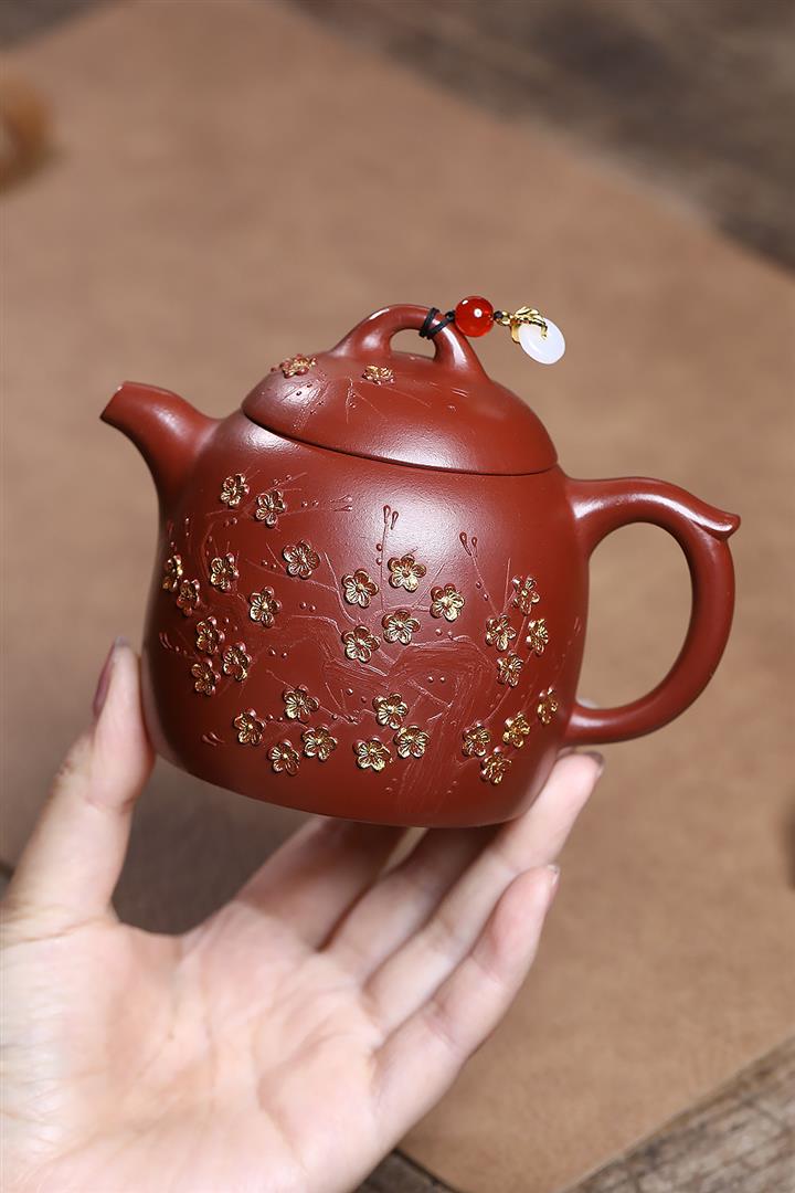原礦大紅袍堆繪點金秦權茶壺POT7232