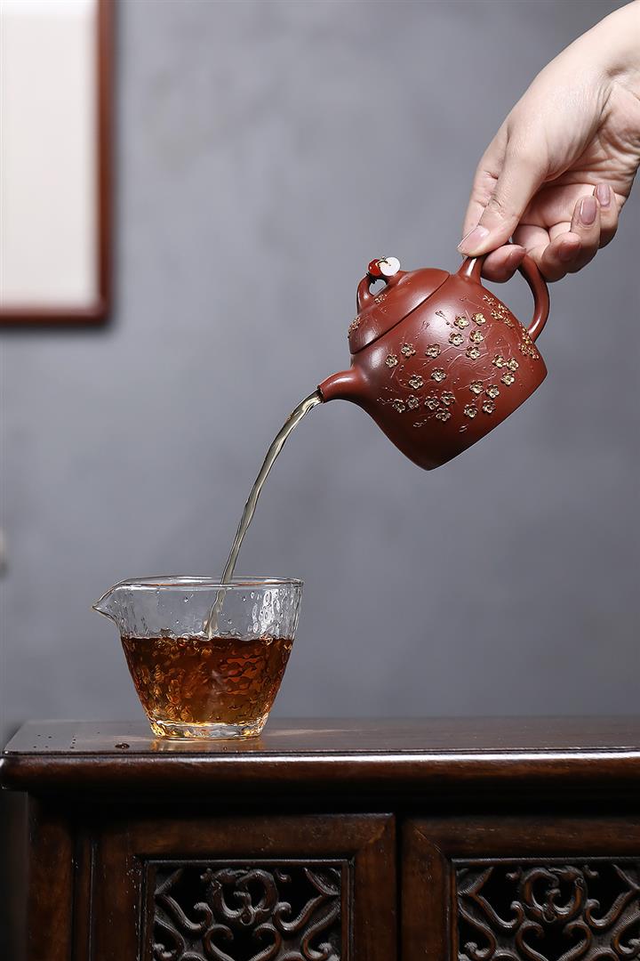紫砂使用越久,壺身色澤越發光亮照人,氣韻溫雅。紫砂壺長久使用器身會因撫摸擦拭,變得越發溫潤光澤!