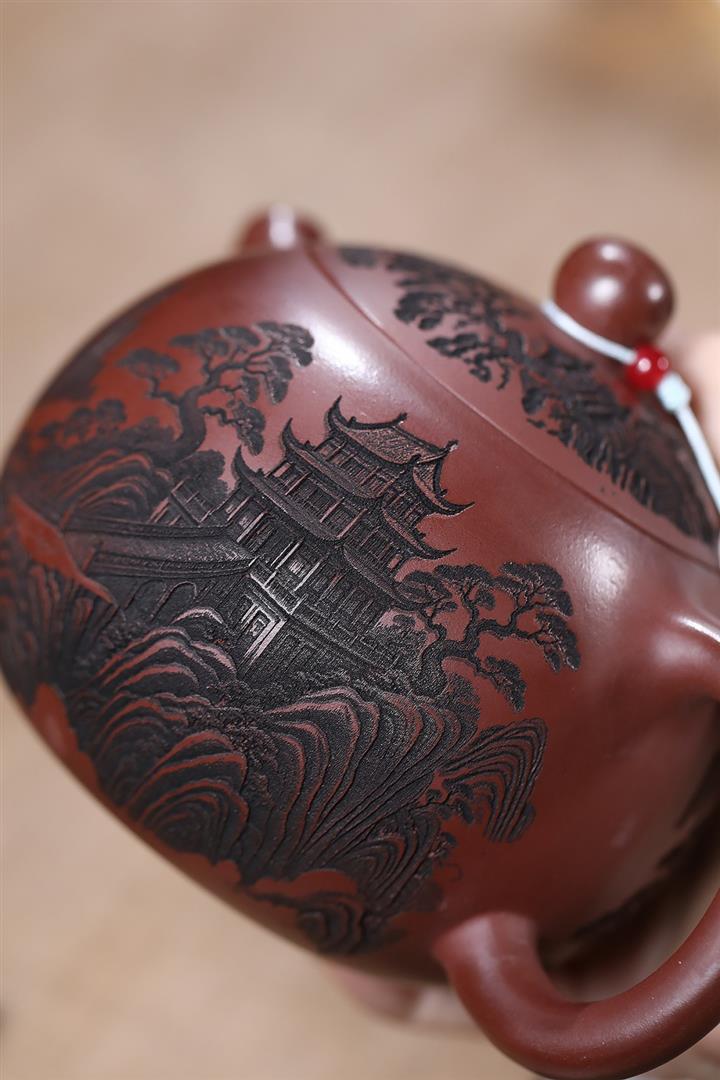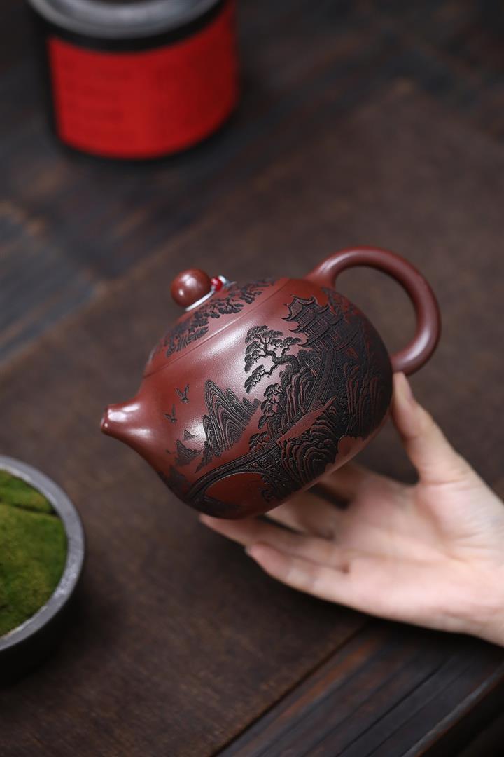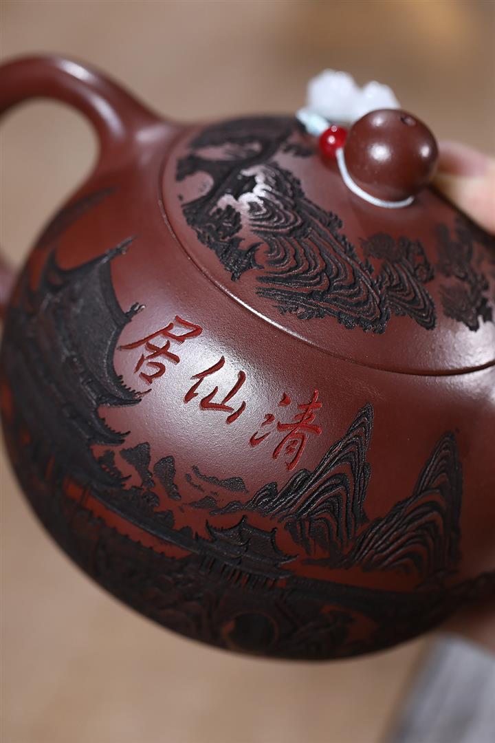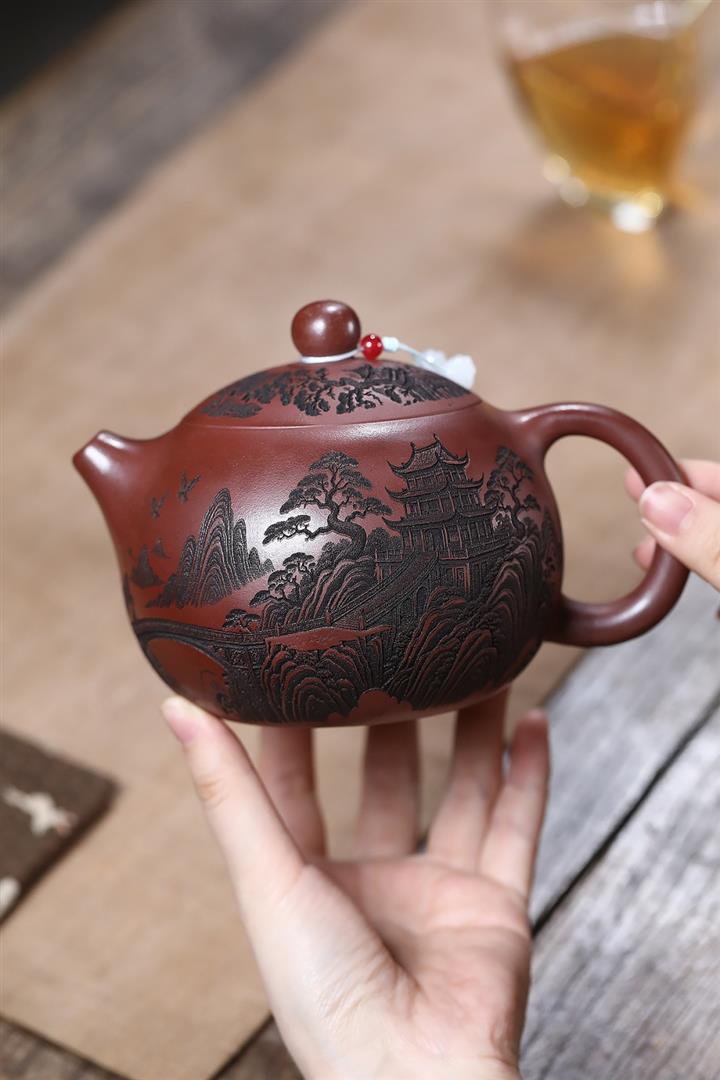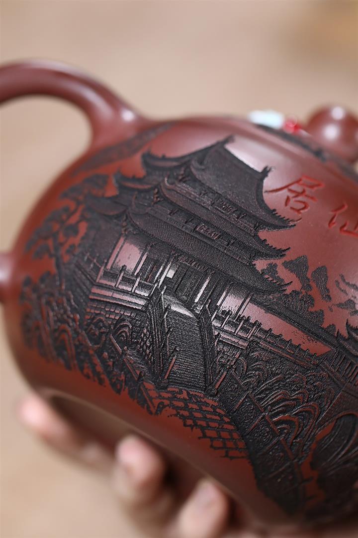 原礦家藏龍血砂滿刻大西施茶壺POT7240