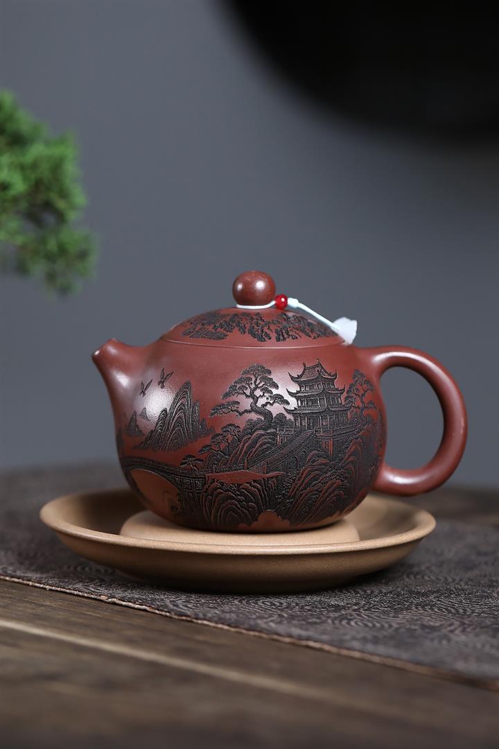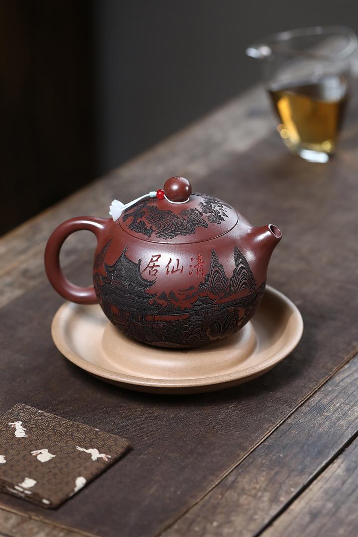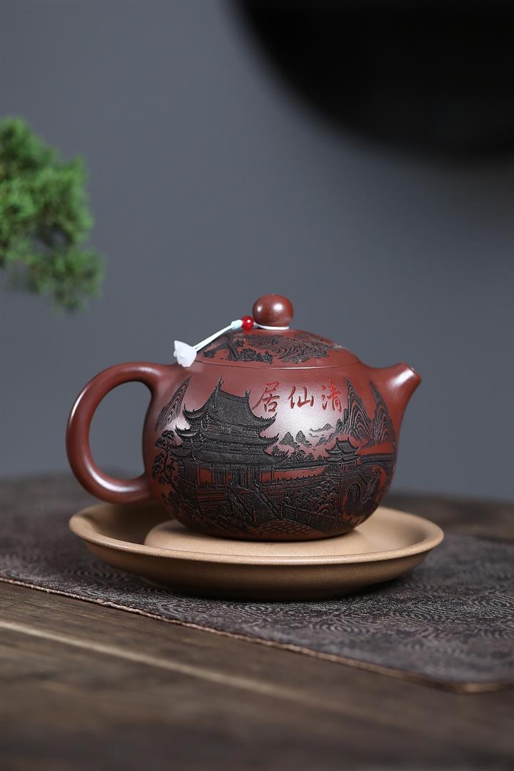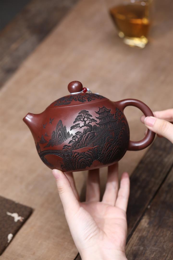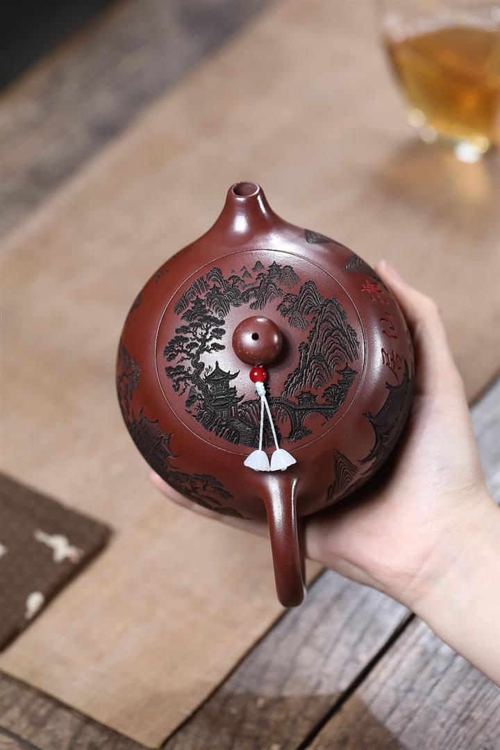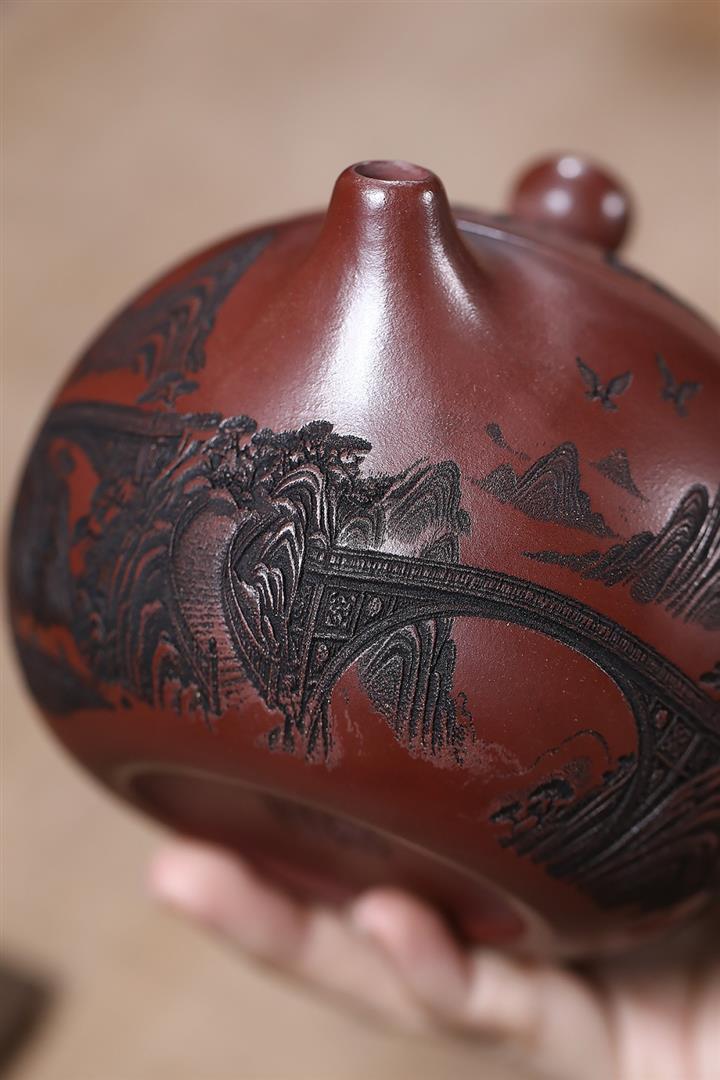 原礦家藏龍血砂滿刻大西施茶壺POT7240