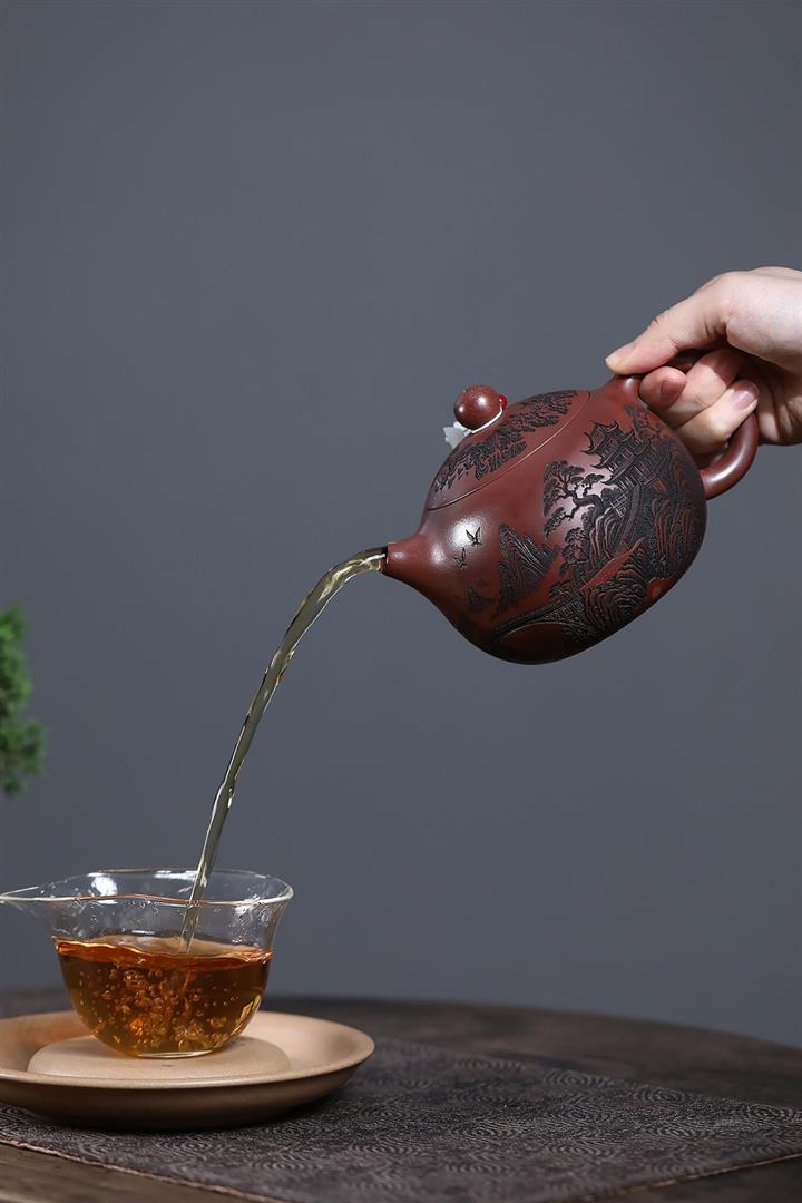紫砂使用越久,壺身色澤越發光亮照人,氣韻溫雅。紫砂壺長久使用器身會因撫摸擦拭,變得越發溫潤光澤!