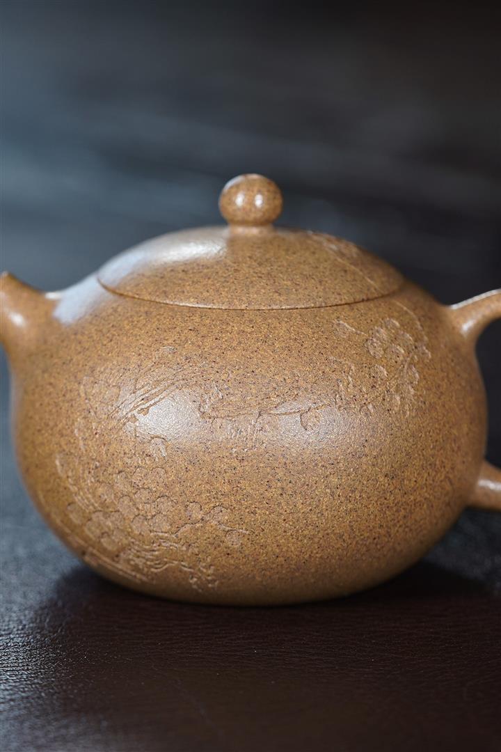原礦紫紅泥通刻線圓壺茶壺POT7266