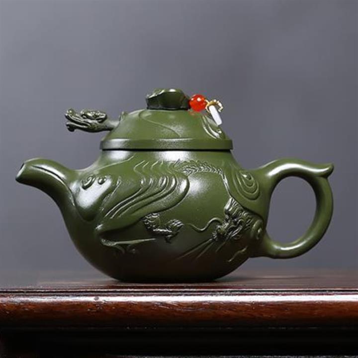 原礦翡翠綠泥魚化龍茶壺POT7368