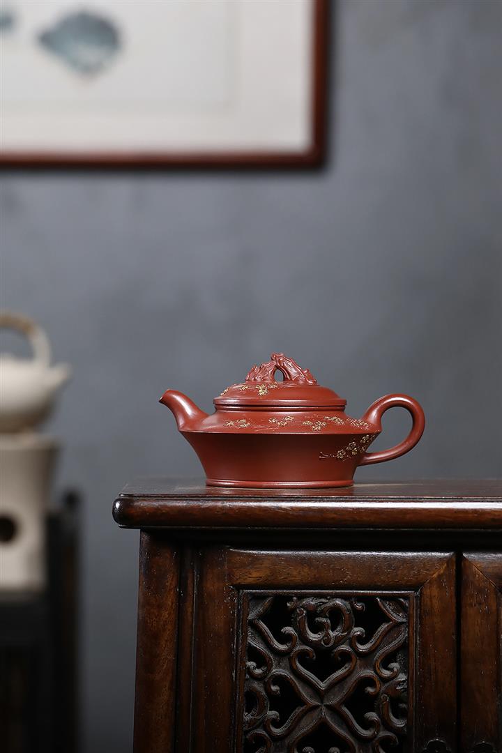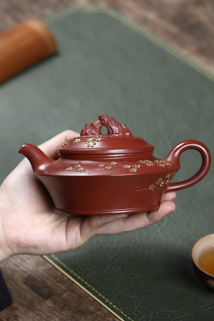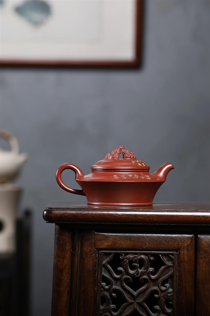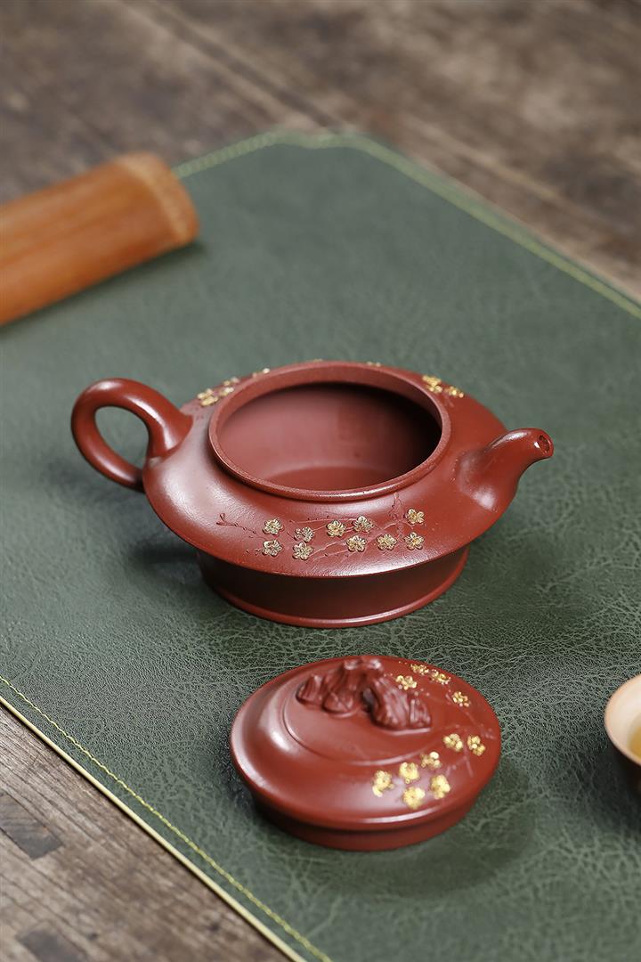 原礦大紅袍描金觀山水扁茶壺POT7366